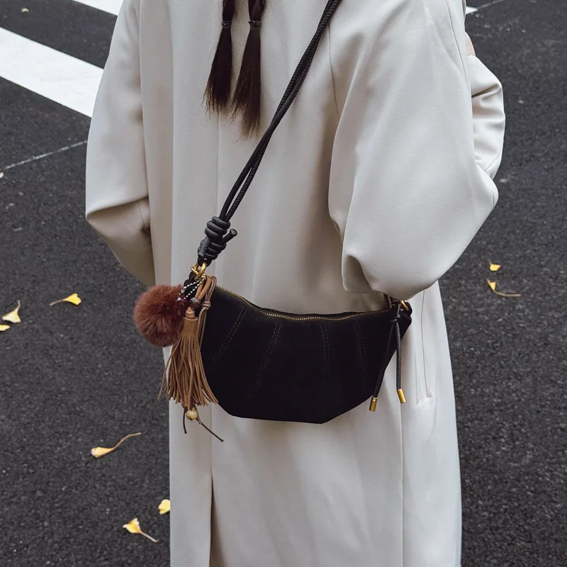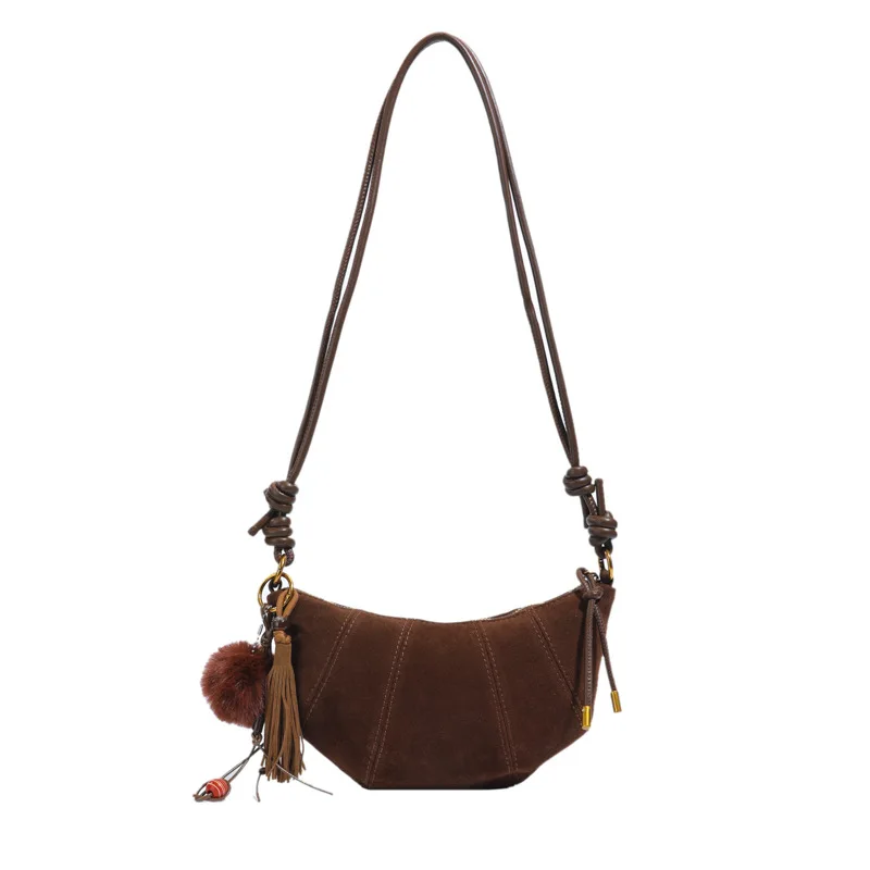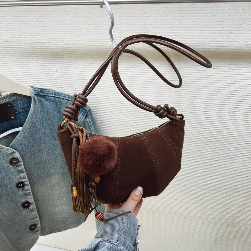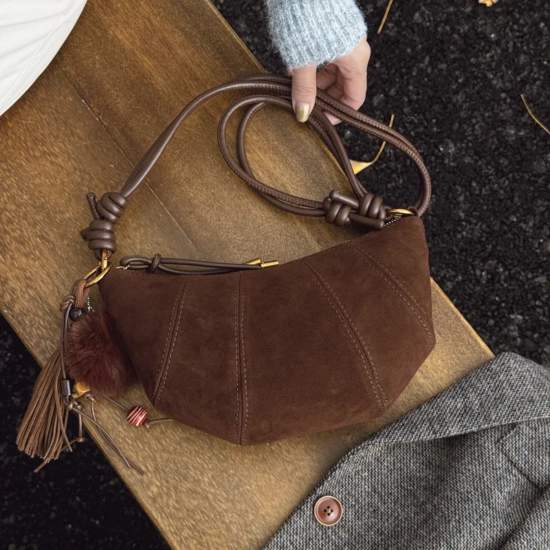 2025 nouveau sac croissant mat moka pour femmes, sac à main à bandoulière Hobo Vintage, sac à bandoulière marron doux, texturé et polyvalent