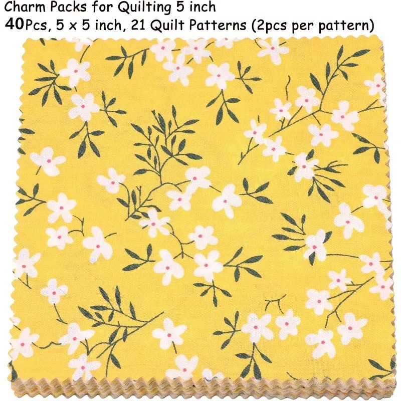 40 pièces sac à breloques matelassé, carrés en tissu pur coton 12.7×12.7 cm patchwork floral matelassé prédécoupé pour la couture artisanat bricolage