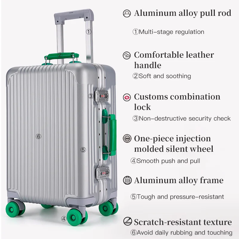 Bagage étudiant simple à poignée large de 20 pouces, valise de voyage pour hommes de grande capacité de 24 pouces, cadre en aluminium de 26 pouces Rol