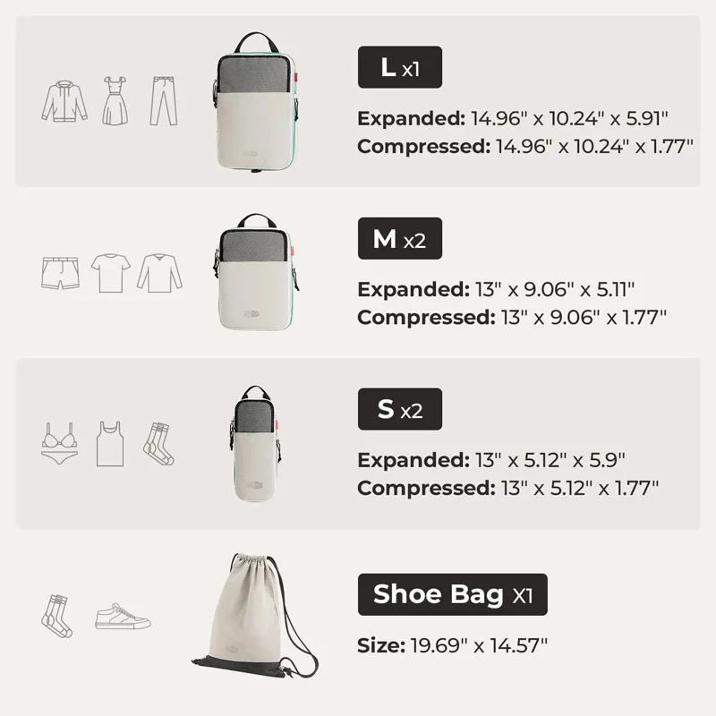 BAGSMART – Cubes d’emballage à Compression, ensemble de voyage extensible, sac de rangement, organisateur de voyage, valise de transport de bagages, 6 pièces