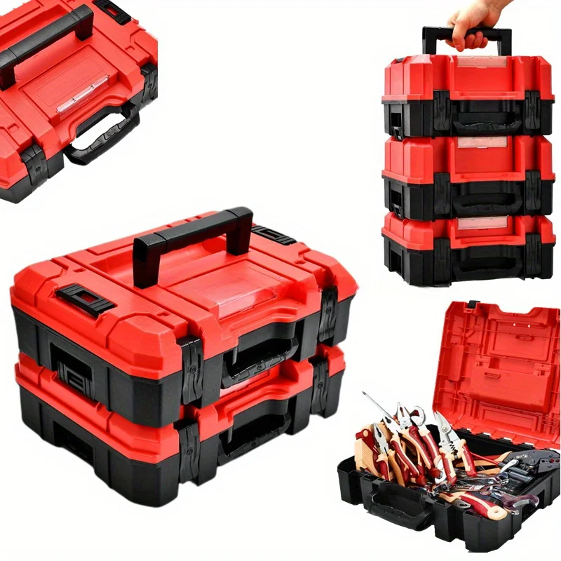 Boîte à outils empilée en plastique, valise multifonctionnelle, boîte à outils de rangement de matériel, organisateur d’outils portables pour électricien charpentier
