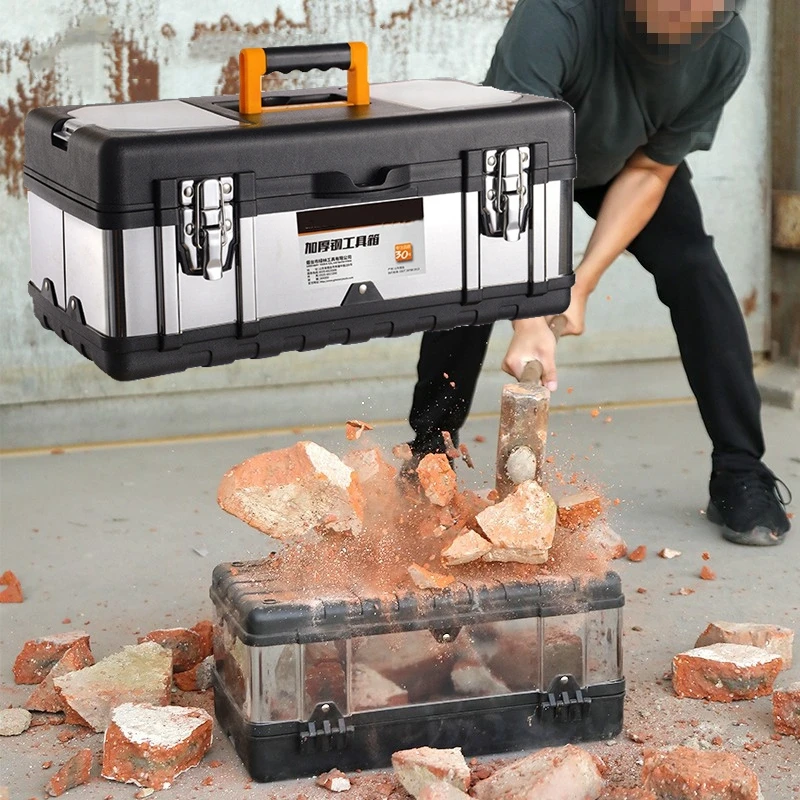 Boîte à outils valise en acier inoxydable 14/17/20 pouces boîte à outils portable domestique matériel boîte à outils stockage mallette métallique
