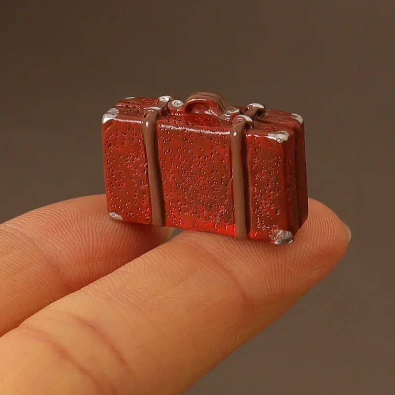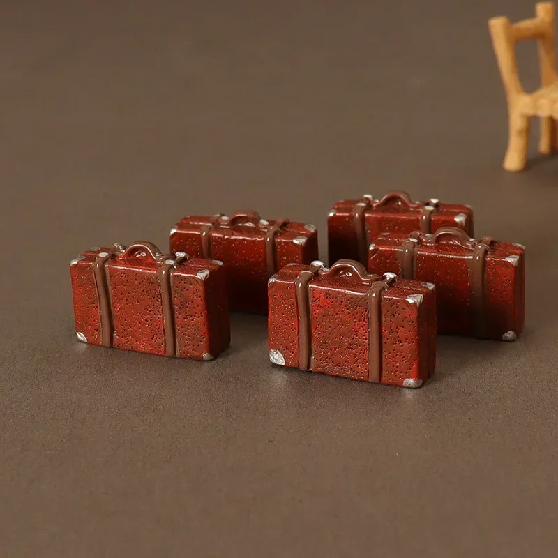 Coffre à bagages en cuir beurre, boîte en bois vintage, accessoires de poupées, courses, meubles de maison, cadeau