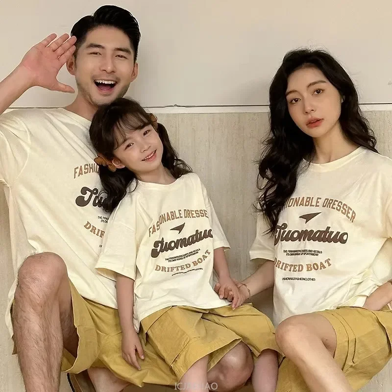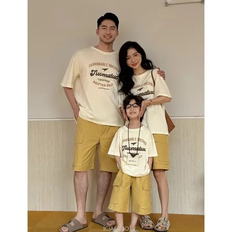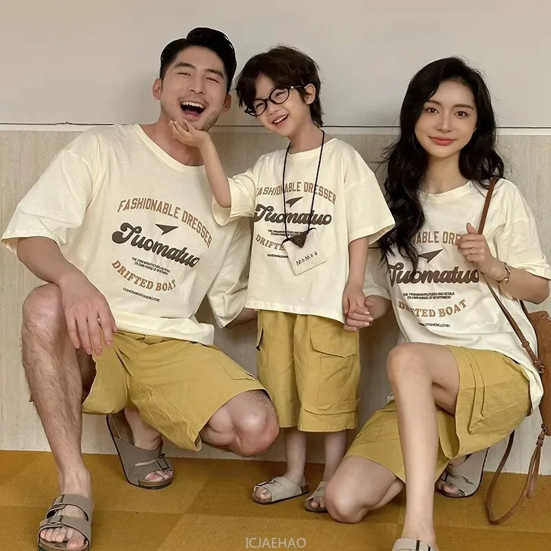 Costumes assortis pour la famille, t-shirts + Shorts en coton à manches courtes pour mère et fils, ensembles deux pièces pour père