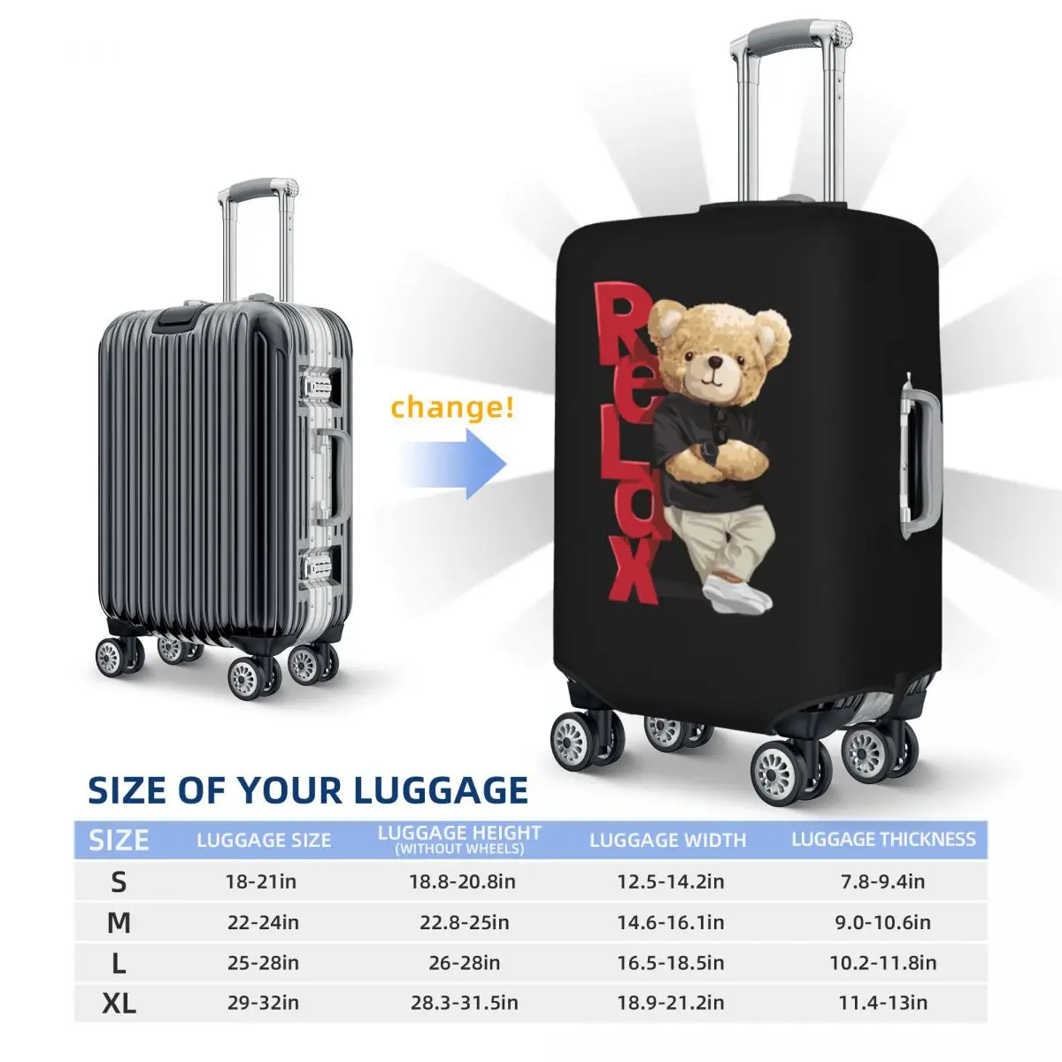 Couverture de valise à motif de beurre d’ours, animal de dessin animé mignon, voyage de croisière de vacances, bagages d’étirement, fournitures de protection, relax
