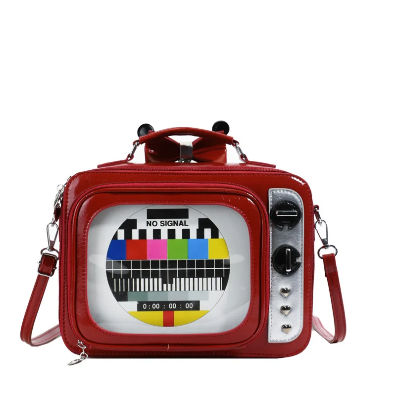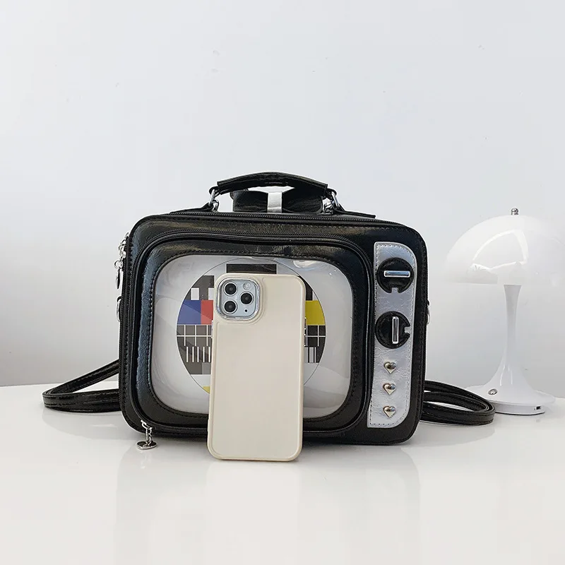 Dessin animé mignon sacs à main pour femmes drôle rétro TV Transparent carré sac mode cuir personnalisé créatif sac à bandoulière femme |