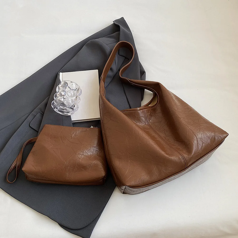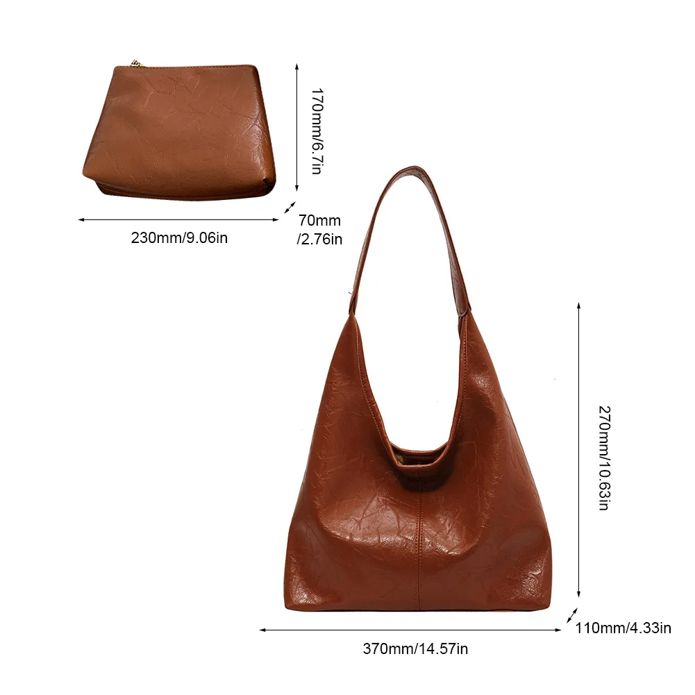 Ensemble de sac à main et pochette en cuir pour femme, sac hobo décontracté, cartable à la mode, 2 pièces