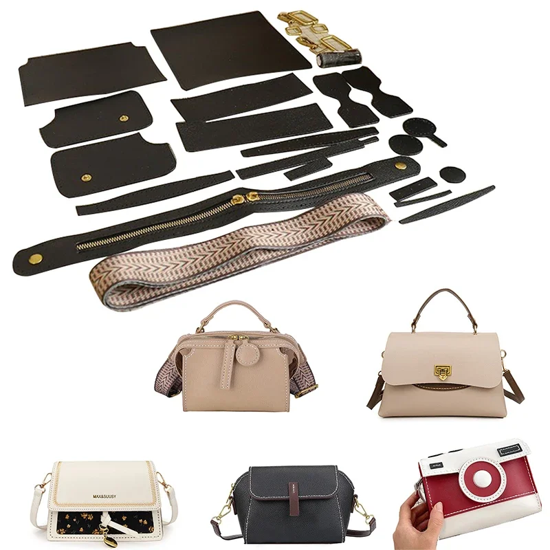 Ensemble de sacs carrés de fabrication à la main, sac cousu à la main en cuir PU, Kit de bricolage fait à la main, matériel de couture, Kits d'artisanat de couture pour accessoires de sacs |