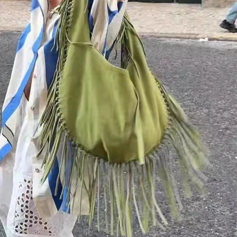 Gland grand croissant sac fourre-tout à la mode vert marron décontracté Simple bandoulière marque concepteur de luxe daim rétro boulette sac à bandoulière |