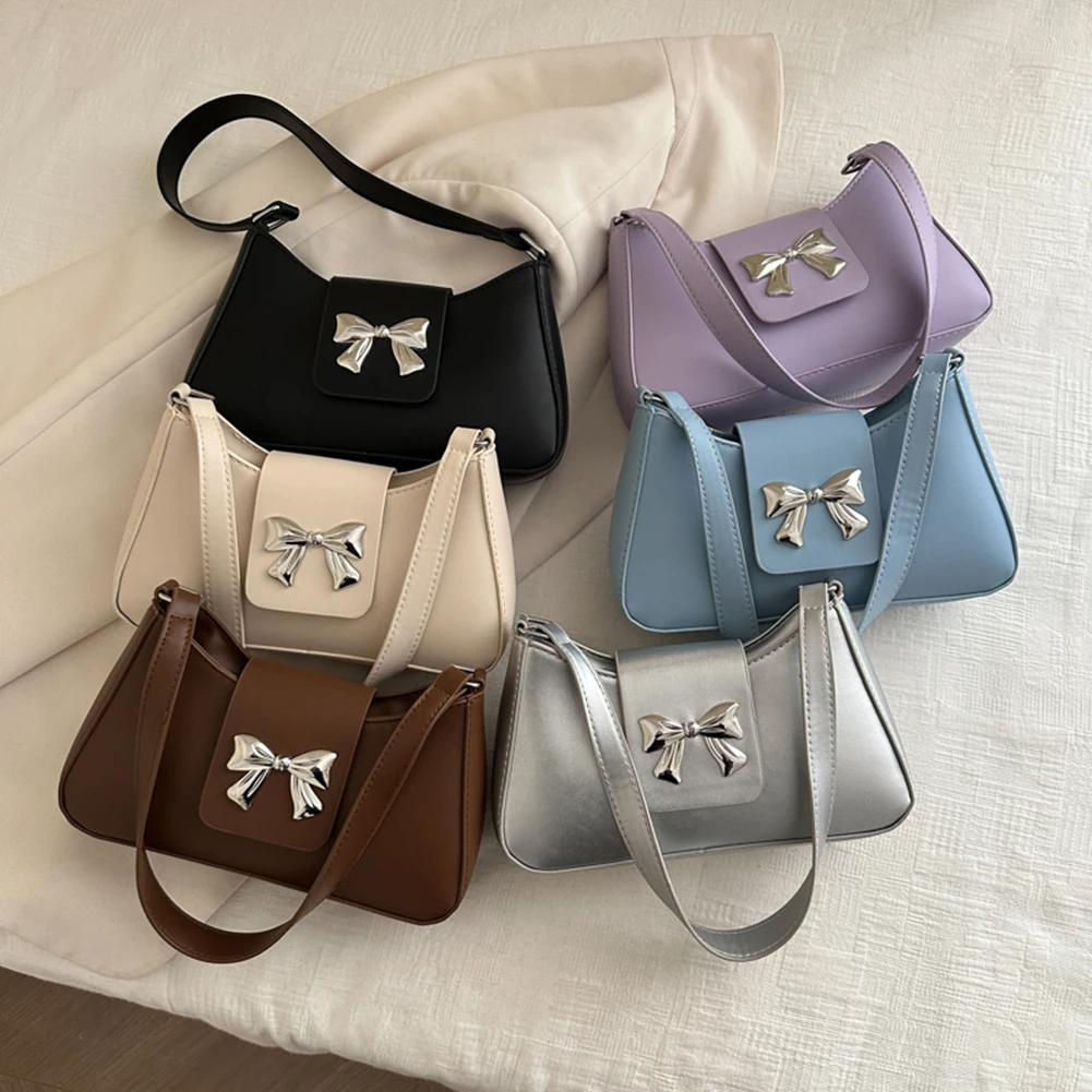 Hobo-Sac à main en cuir PU avec nœud mignon pour femme, pochette Y2K, sac fourre-tout pour le travail, le shopping, les voyages |