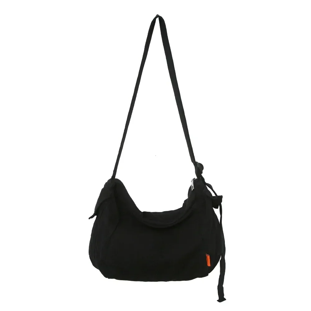 Hobo-Sac en toile souple pour femme, sac en tissu souple, sac à bandoulière pour étudiant, livre scolaire de taille moyenne, poudres pour ordinateur portable, sac latéral Messenger, Y2K