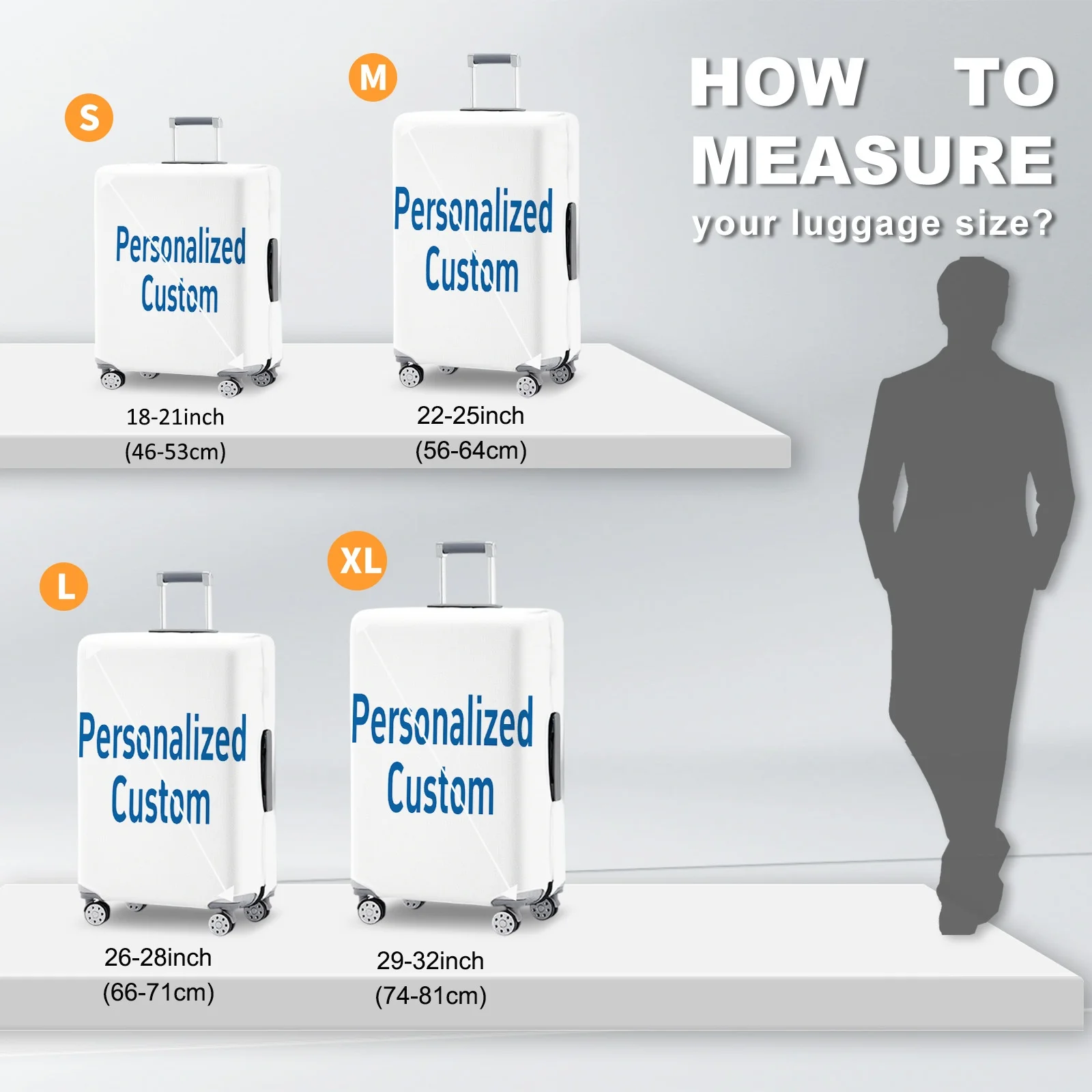 Housse de bagage en nylon personnalisable avec nom personnalisé – Protecteur de bagage élastique pour valise, organisateur de sac à main anti-poussière, adapté aux valises de 18 à 32 pouces, bagage de voyage, housse de bagage personnalisée, matériel de voyage élégant, personnaliser avec vos propres photos et texte, impression double face