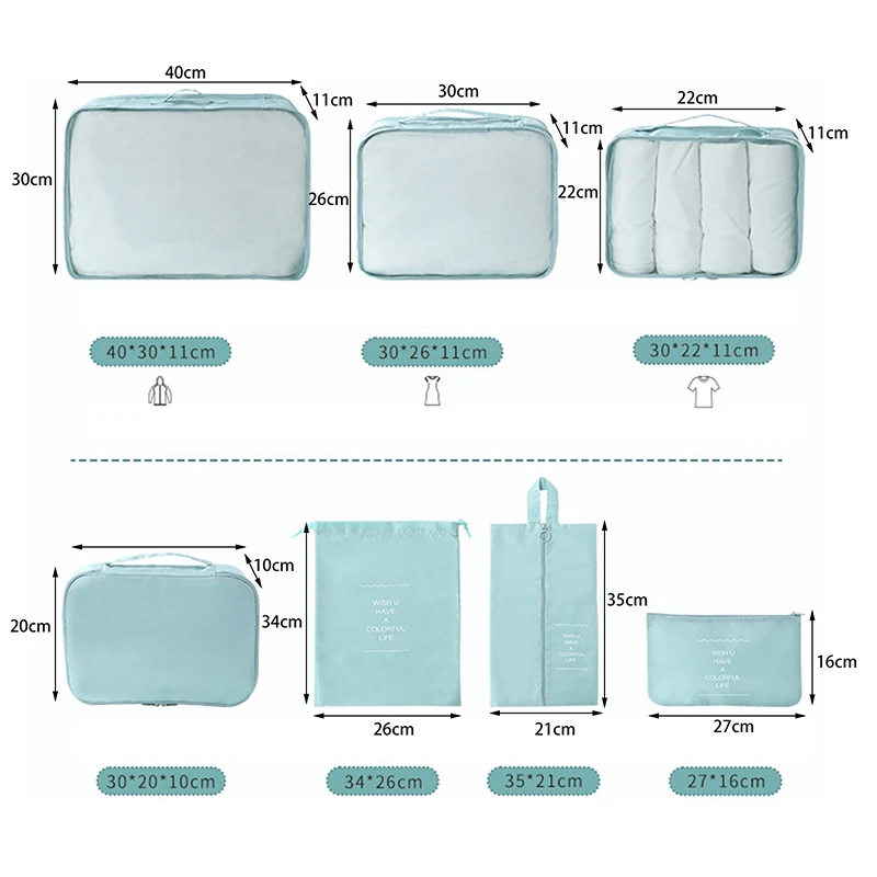 Lot de 7 grands sacs de rangement de voyage pour valise ; Vêtements, chaussures, rangement de maquillage pour bagages ; Sac de rangement de voyage portable