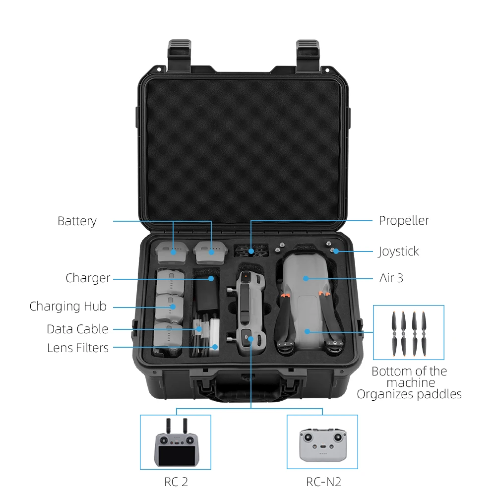 Mallette de rangement à coque rigide pour DJI Air 3/3S, boîte de transport, valise Portable de grande capacité pour accessoires de rangement de Drone RC 2/-N2