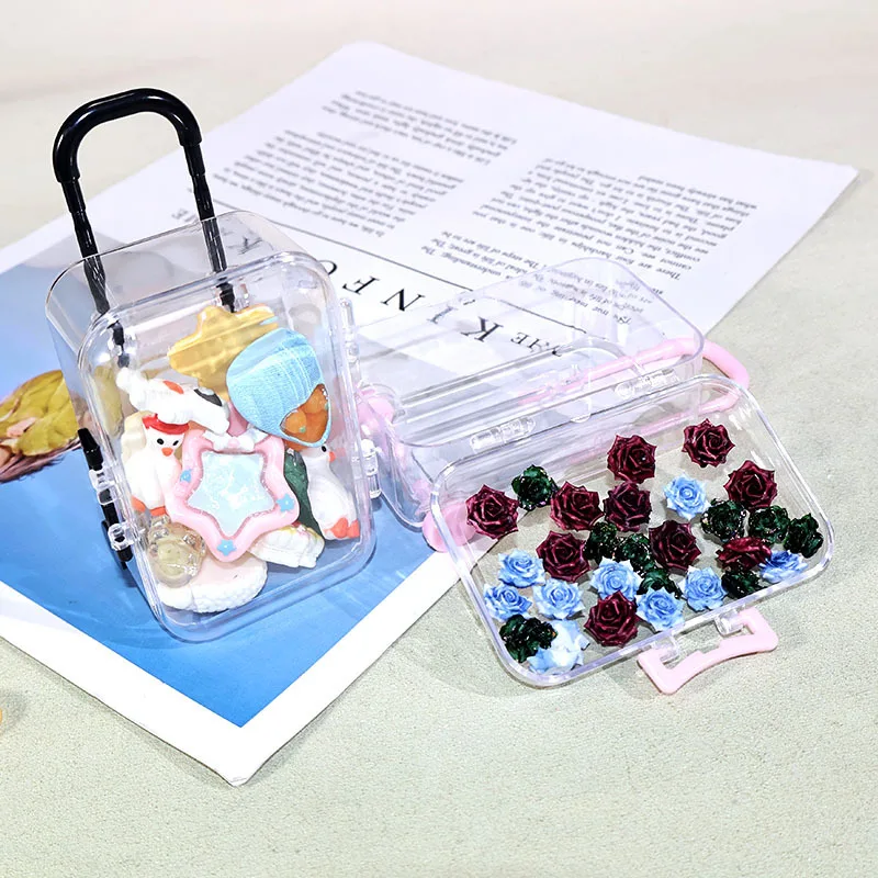 Mini valise avec poignée, boîte de rangement transparente pour petits accessoires, articles décoratifs DIY, ornements de table, boîte de rangement