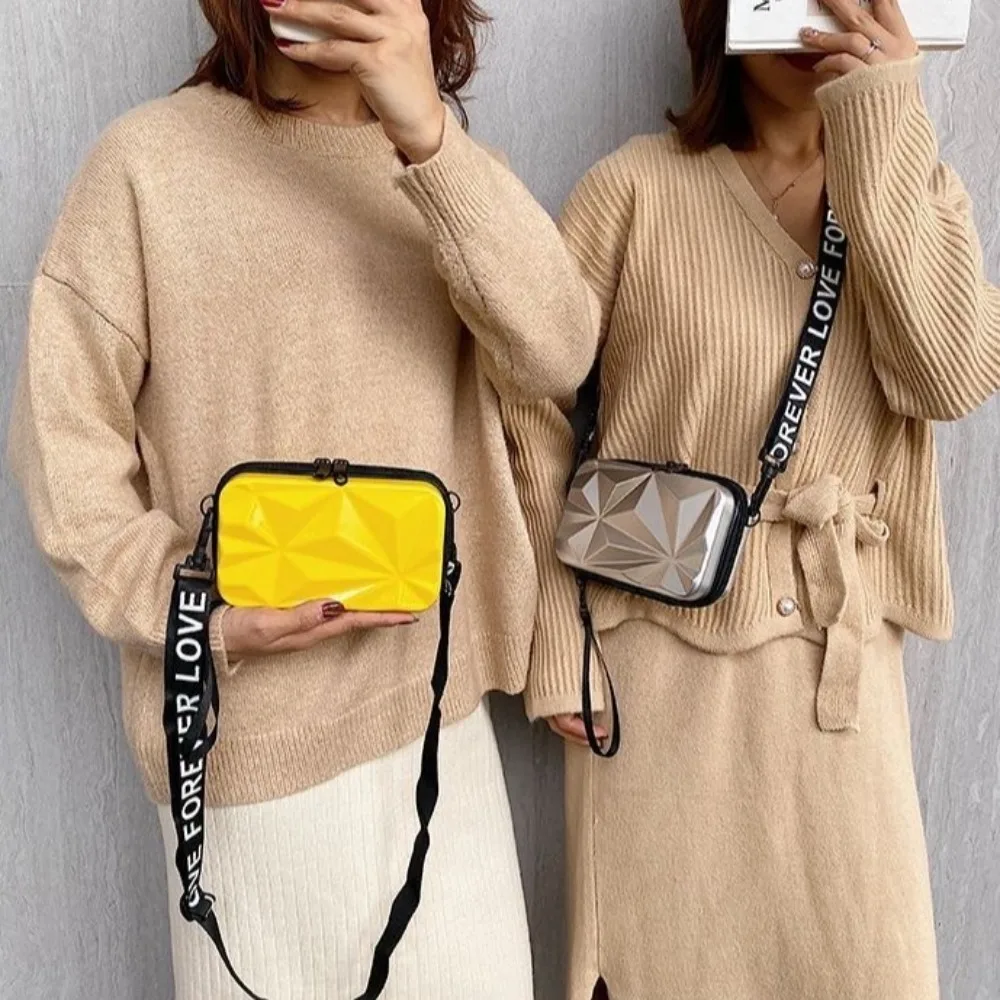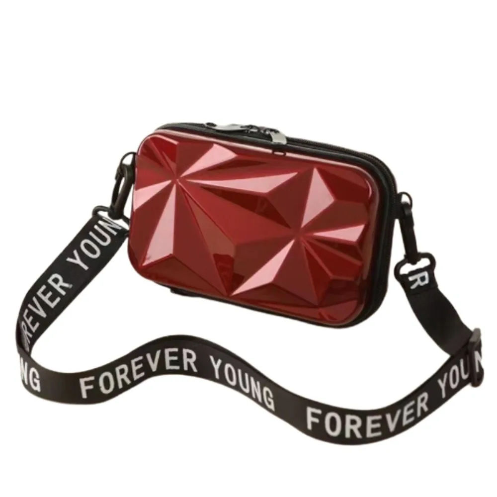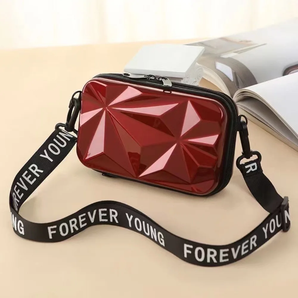 Mini valise de 7 pouces en forme de valise pour femmes, sac à bandoulière simple étanche à fermeture éclair, sac à rouge à lèvres de couleur unie, sac de maquillage à coque rigide