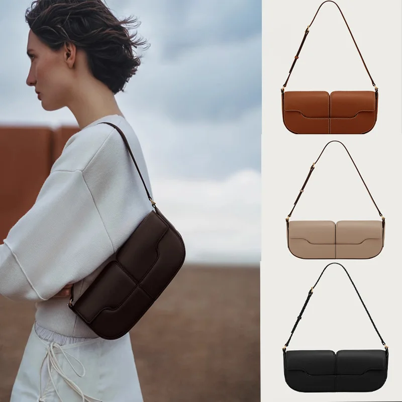 Niche automne et hiver sac sous les bras à une épaule, sac à main en peau de vache, sac baguette à main décontracté et simple