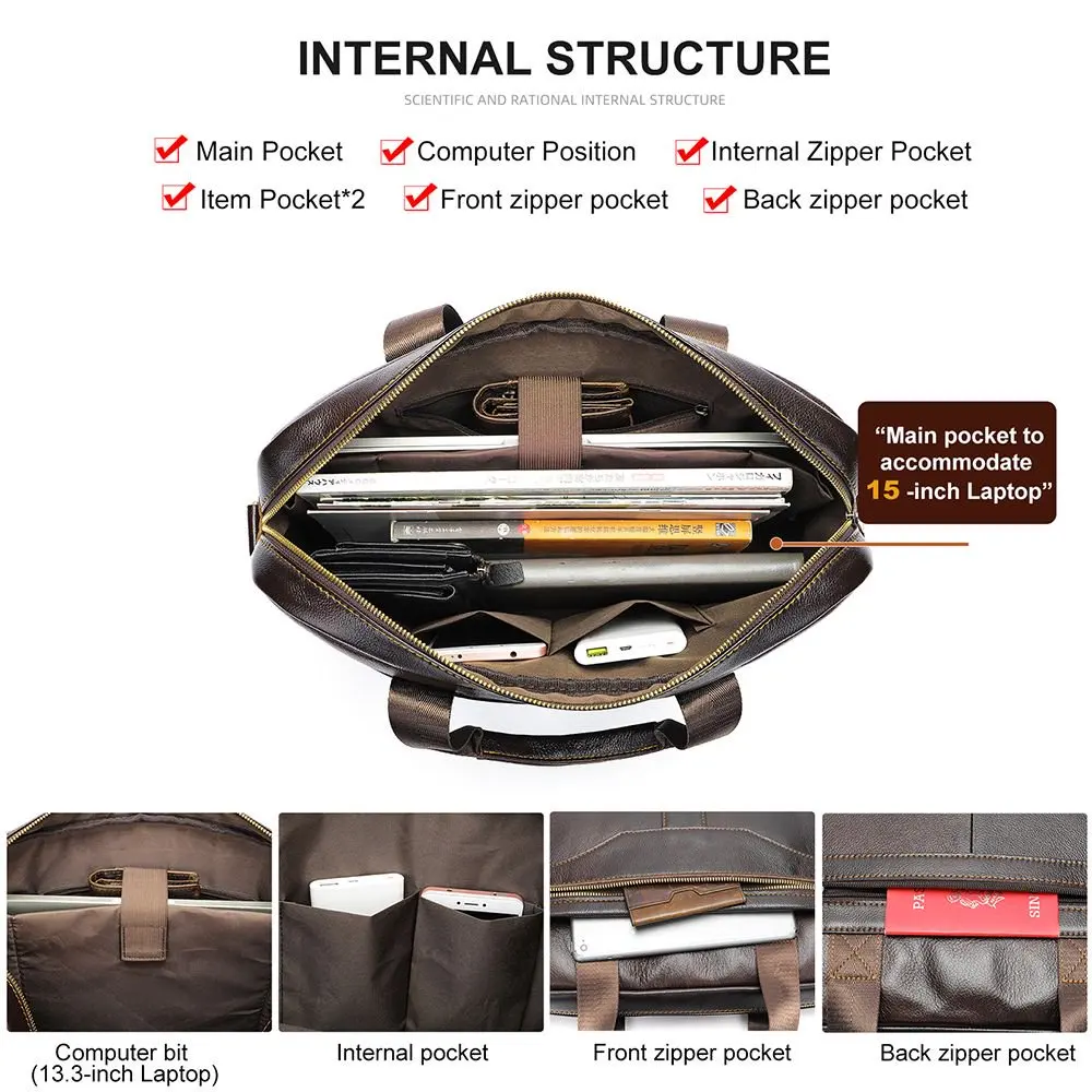 Nouveau sac à main pour hommes, sac à main rétro de bureau décontracté d’affaires de grande capacité, sac pour hommes en cuir véritable, sac de bureau, porte-documents