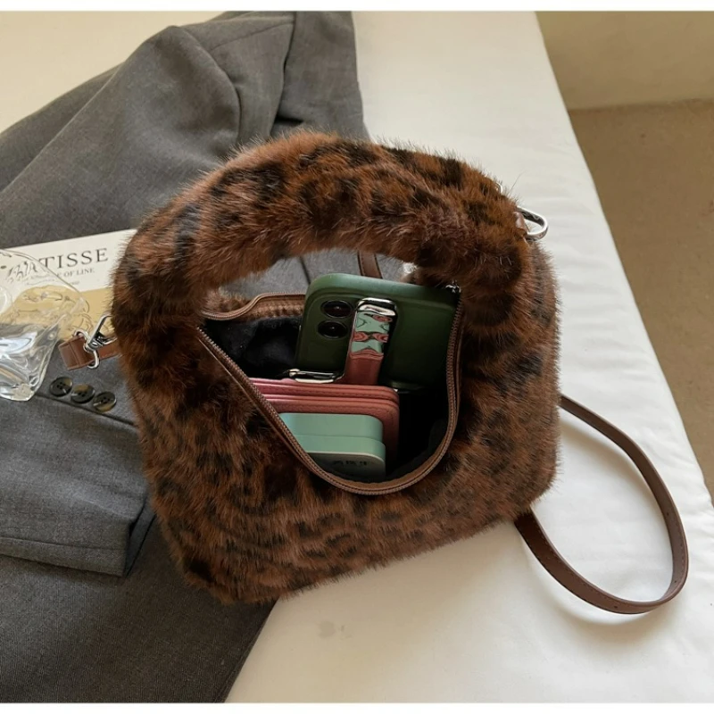 Nouveau sac Hobo de luxe de créateur femmes mode fausse fourrure imprimé léopard sac à bandoulière mignon en peluche sac à bandoulière décontracté