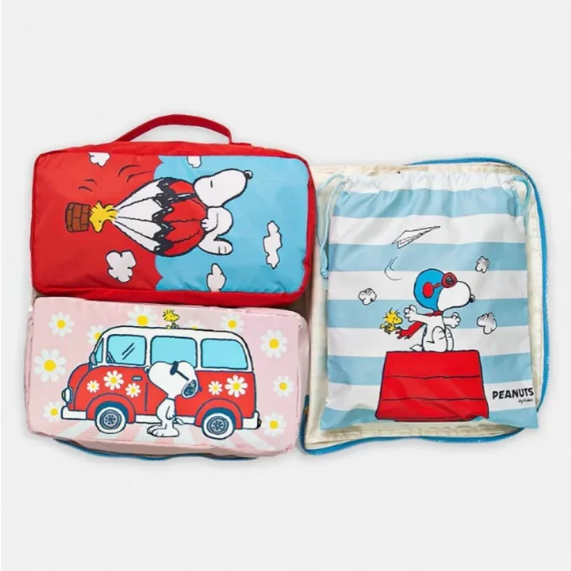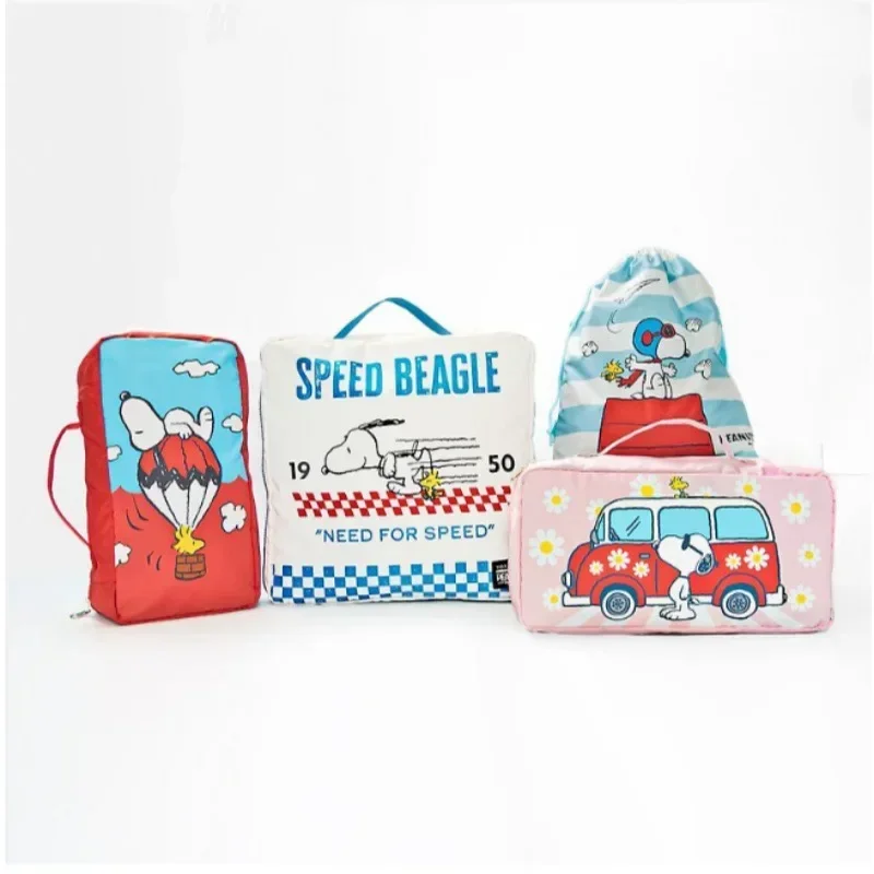 Nouveau Snoopy mignon dessin animé voyage sac de rangement 4 pièces ensemble valise vêtements chaussures grande capacité organisateur sac pour sortir