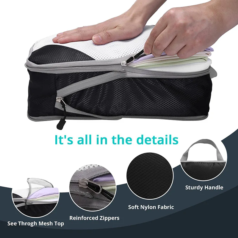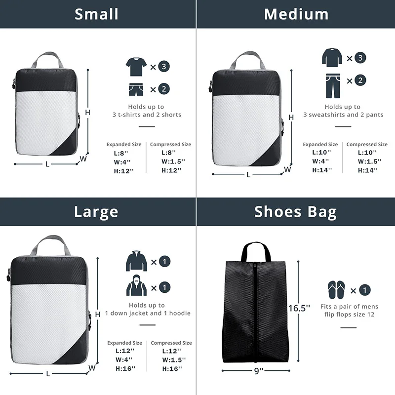 Organisateur de bagages Portable de voyage, sacs de rangement, Cubes d’emballage à Compression, sacs à chaussures avec maille, pochette légère et pliable