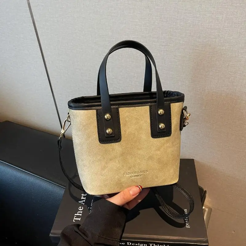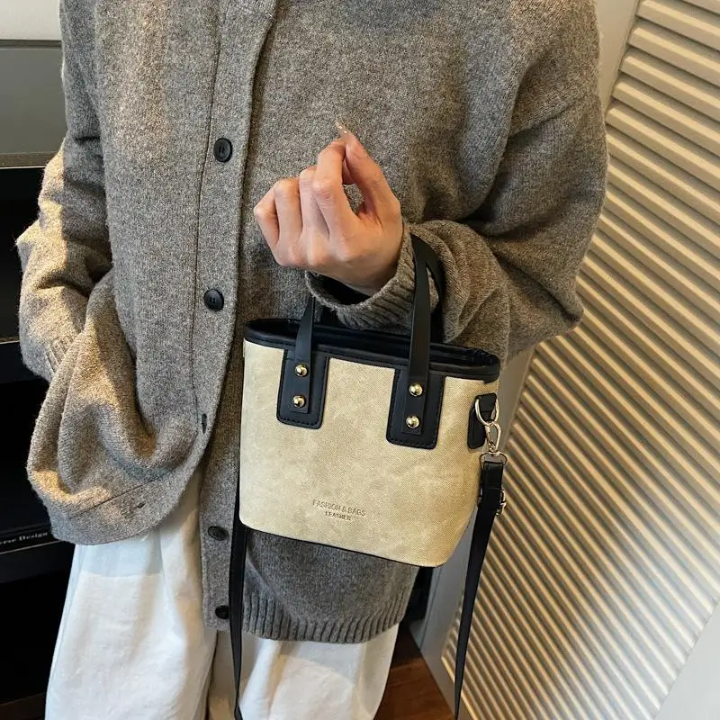 Petit sac à bandoulière carré pour femmes, sac seau polyvalent tendance, sac à main couleur bloquée