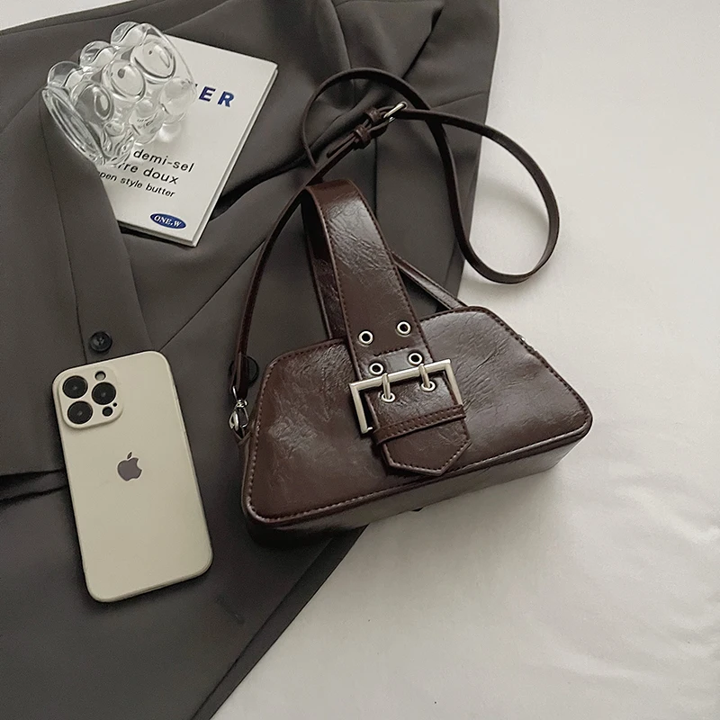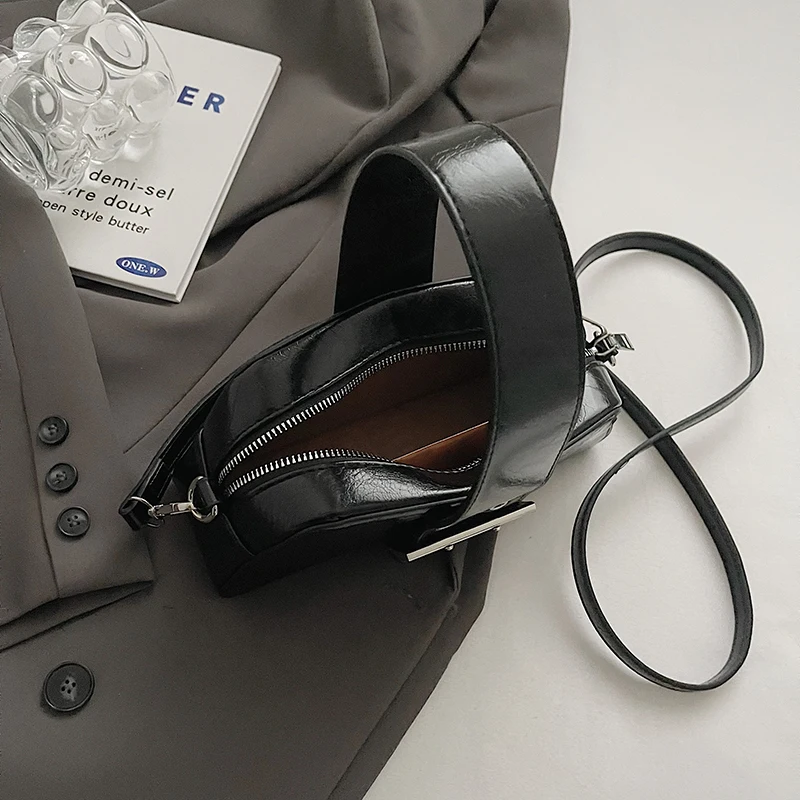 Petit sac à main rétro en cuir pour femme, sac à bandoulière, sac à main à fermeture éclair, noir, café, rivet, initié, poignet, mode |