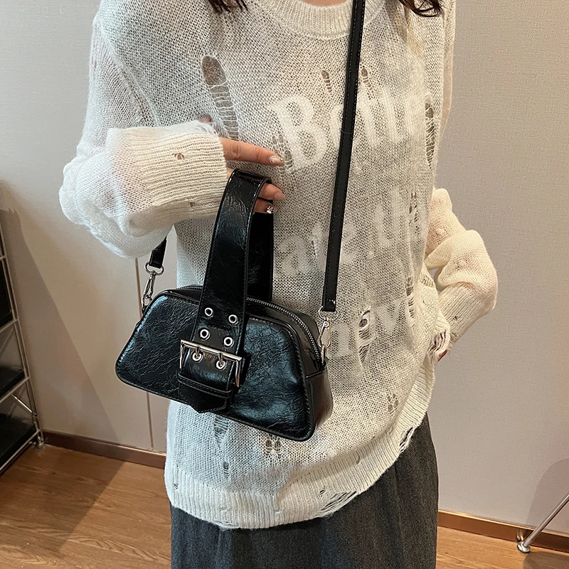 Petit sac à main rétro en cuir pour femme, sac à bandoulière, sac à main à fermeture éclair, noir, café, rivet, initié, poignet, mode