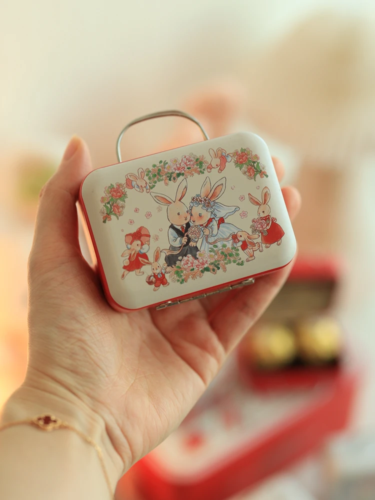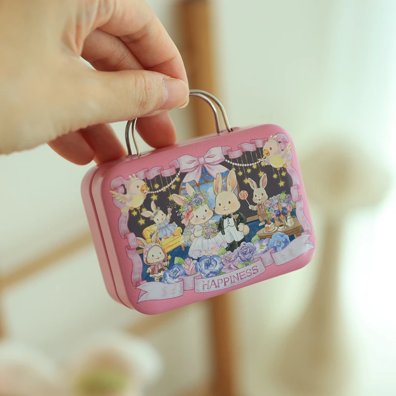 Petite valise de couple lapin de dessin animé, 18 boîtes à bonbons, mini bijoux de voyage, coffret cadeau de mariage, mallette de rangement pour cils à la maison, 1 pièce |