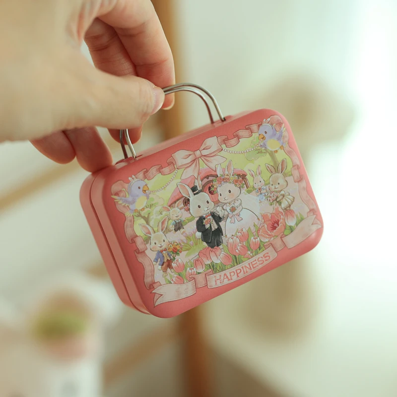 Petite valise de couple lapin de dessin animé, 18 boîtes à bonbons, mini bijoux de voyage, coffret cadeau de mariage, mallette de rangement pour cils à la maison, 1 pièce