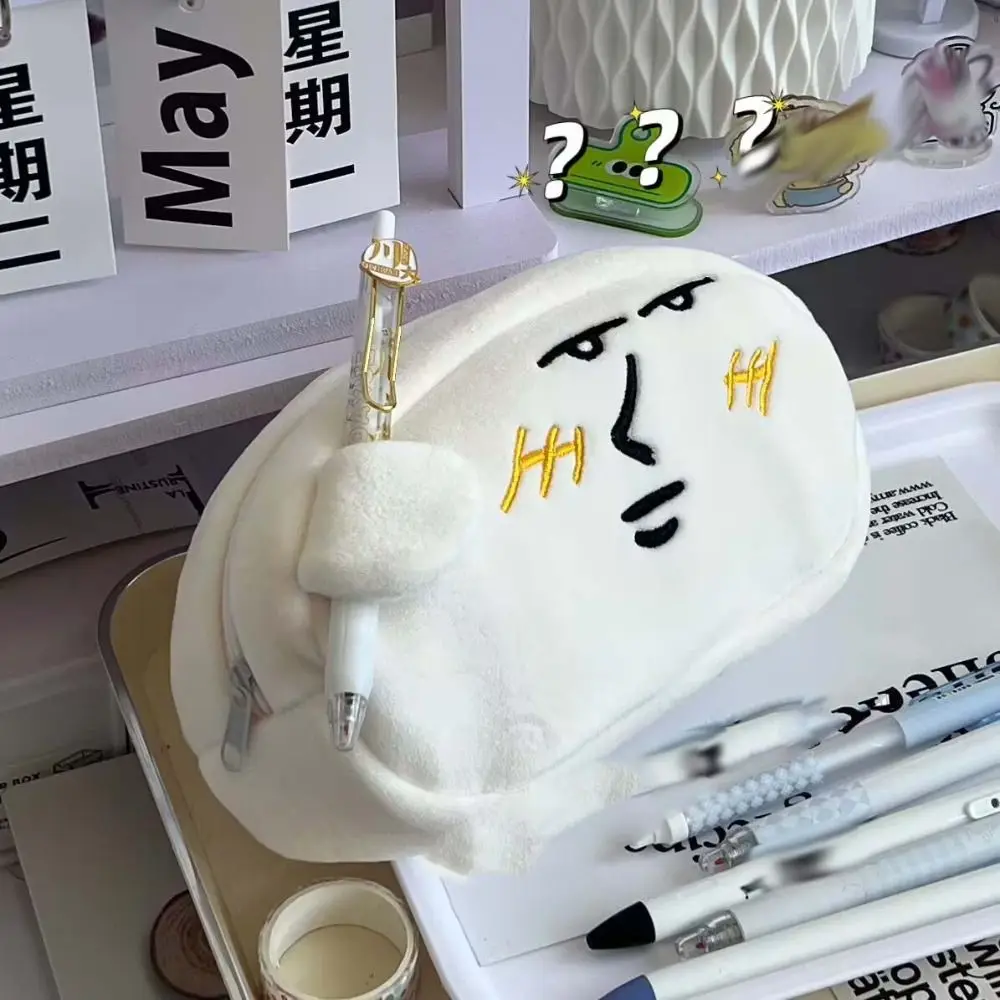 Pochette à crayons d'expression drôle de grande capacité, sac à cosmétiques, étui à stylos en peluche de dessin animé, sac de maquillage, sac de rangement de papeterie |