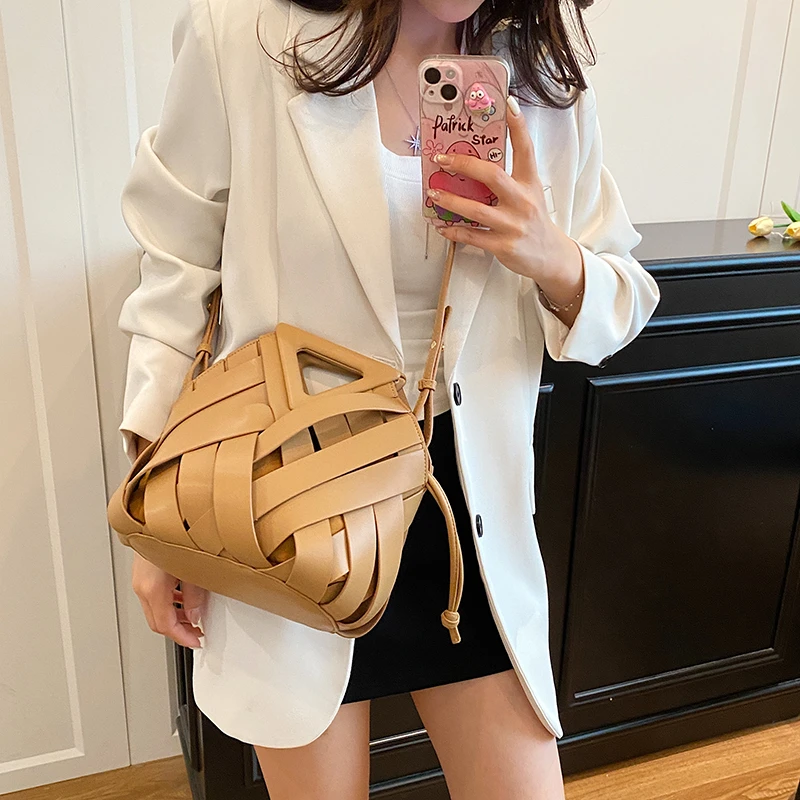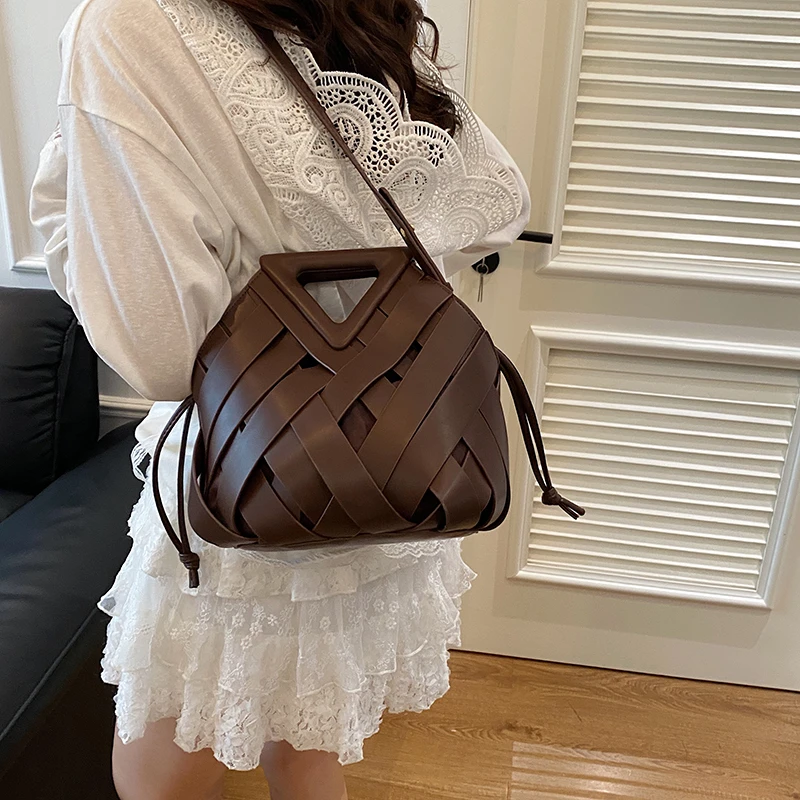 Pochette tissée en PU pour femmes, sac à main tressé de luxe, haut de gamme, à la mode, sac à bandoulière élégant et minimaliste