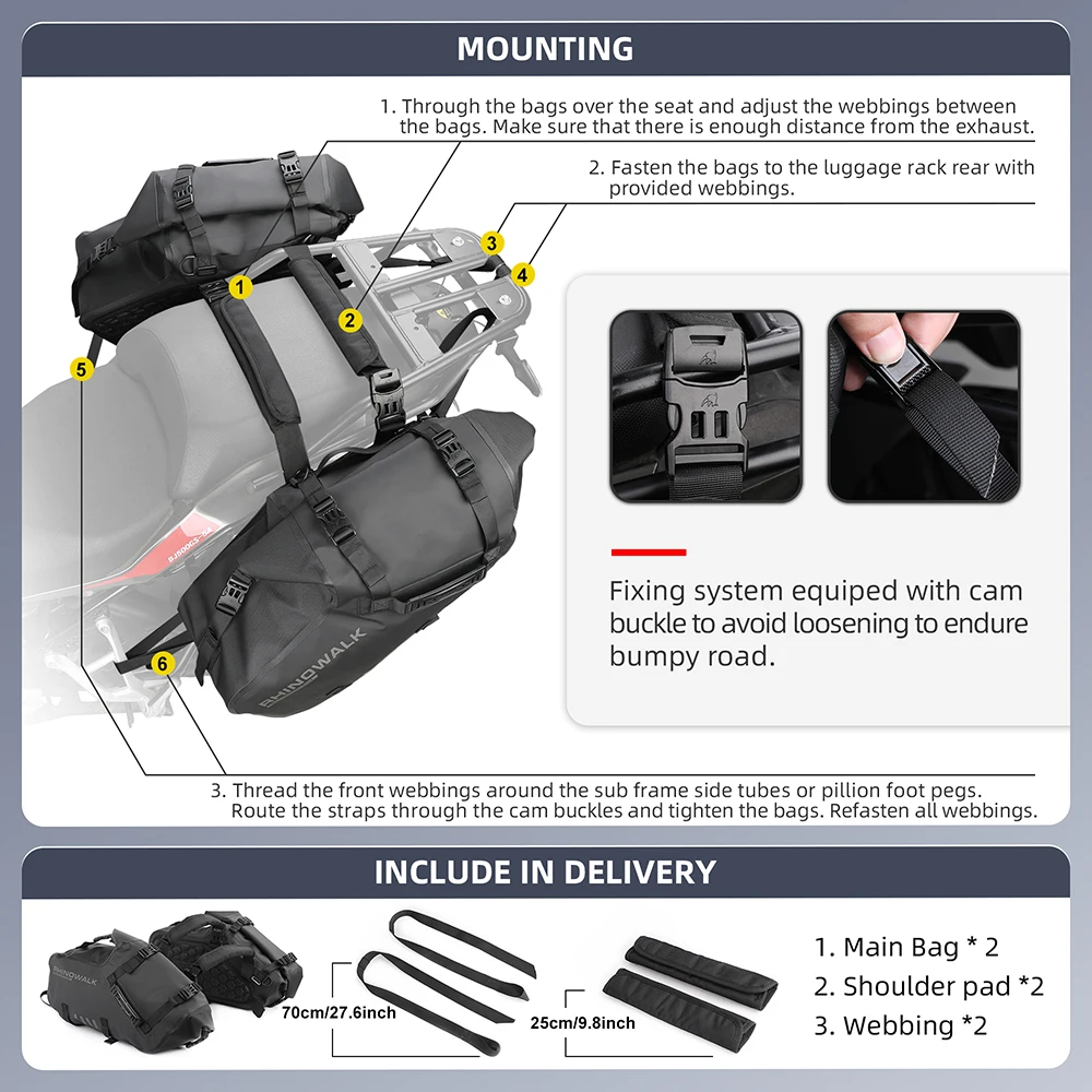 Rhinowalk – sacoche de moto étanche pour la plupart des supports latéraux, vélo de Sport tout-terrain adapté à BMW Honda Kawasaki Yamaha Benelli