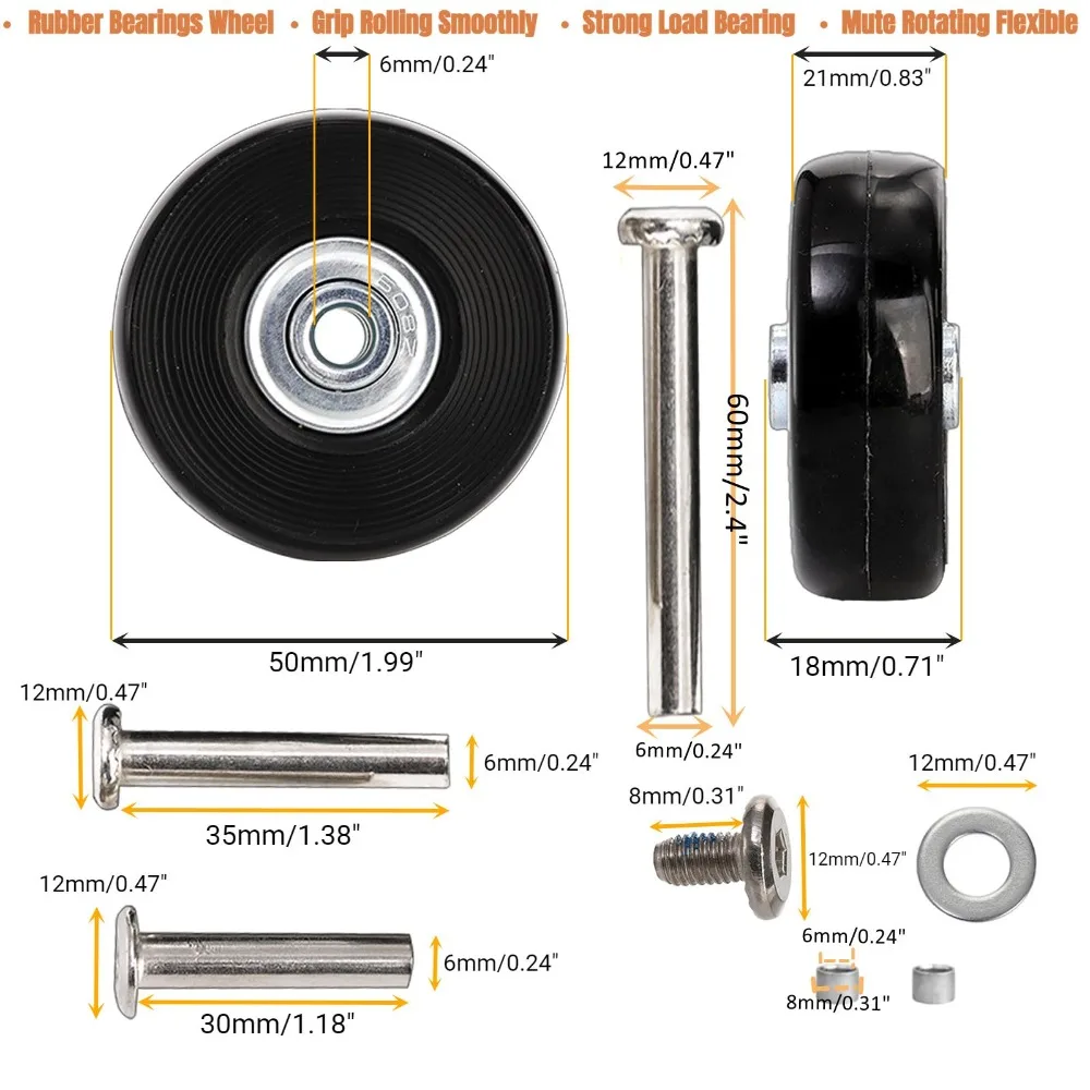 Roues de valise silencieuses, chariot en caoutchouc, roulettes à bagages, sac de voyage Durable de haute qualité, accessoires de réparation de roues pour roulement silencieux