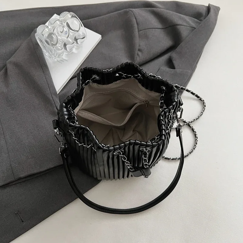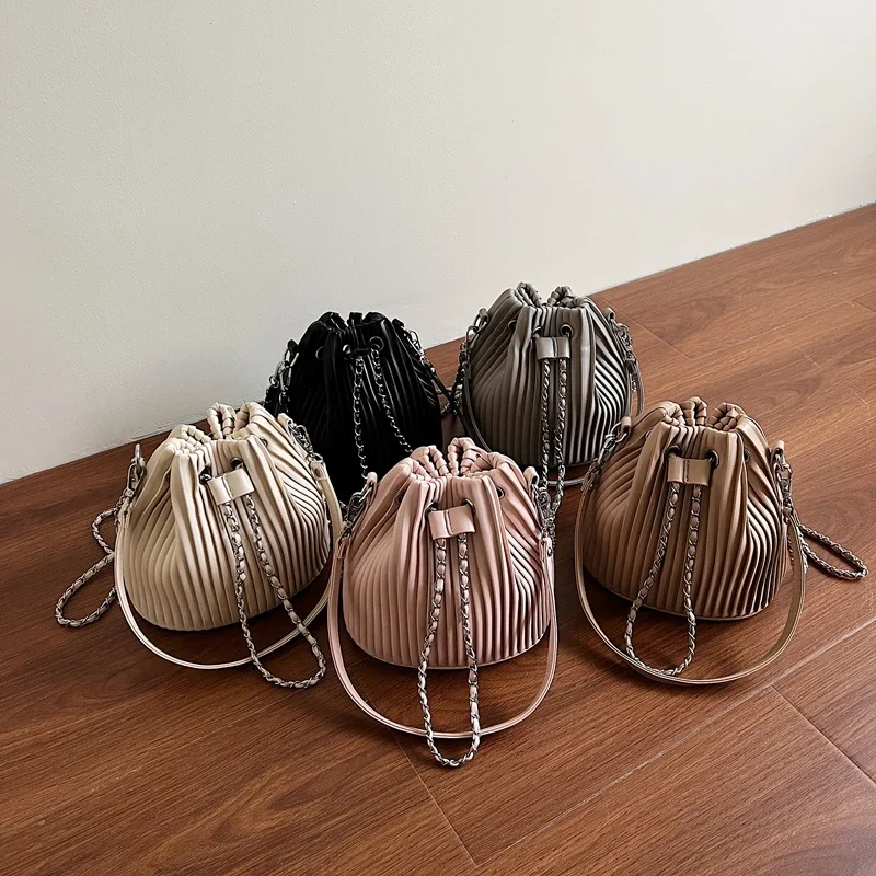 Sac à bandoulière en cuir PU pour femmes, Design de marque, sac seau à rayures plissées, Mini petit sac à bandoulière Simple pour dames