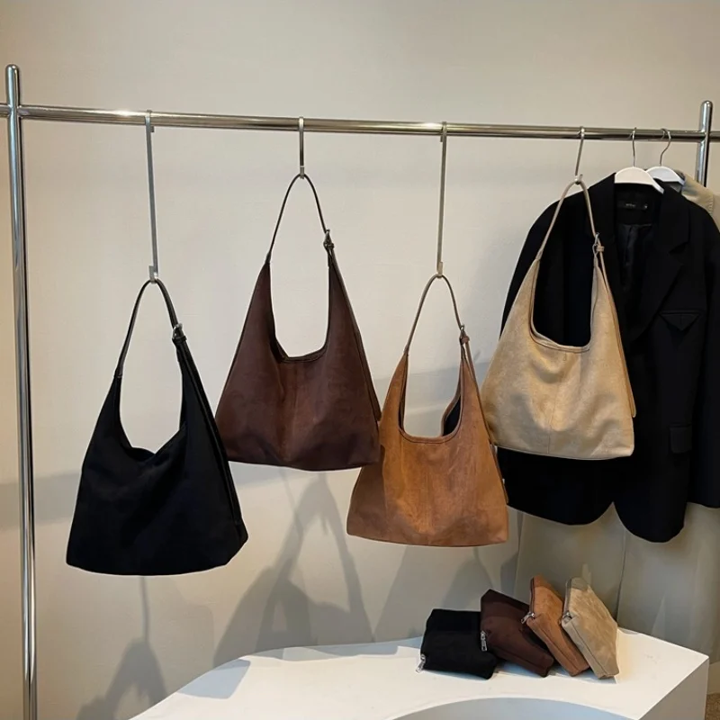 Sac à bandoulière en daim pour femmes avec fermeture éclair, sacs Hobo de grande capacité, sac à main ample, sac de voyage de banlieue, sacs à main et sacs à main
