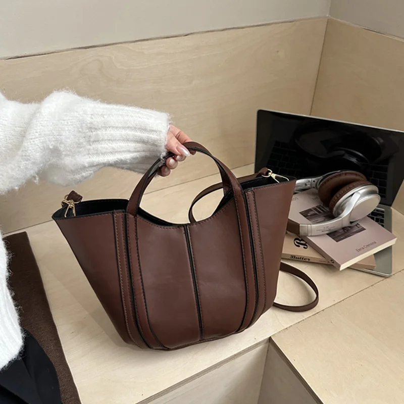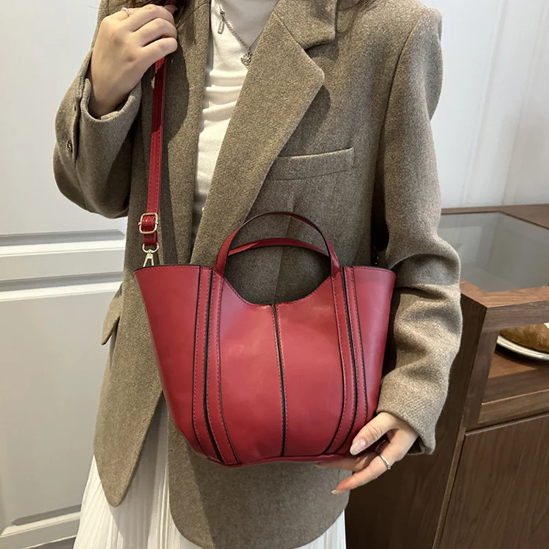Sac à bandoulière seau Vintage pour femmes, petit sac à main fourre-tout de couleur unie |