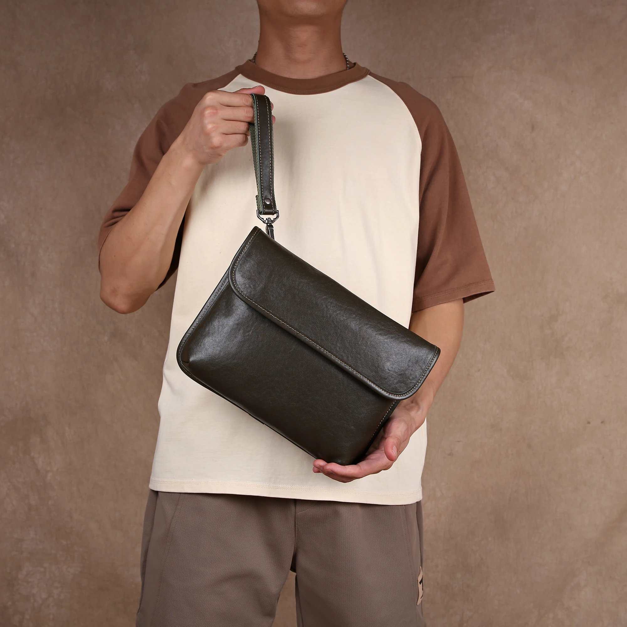 Sac à bandoulière simple en cuir de vache haut de gamme, sac à bandoulière jeune et à la mode, pochette en cuir véritable, sac sous les bras