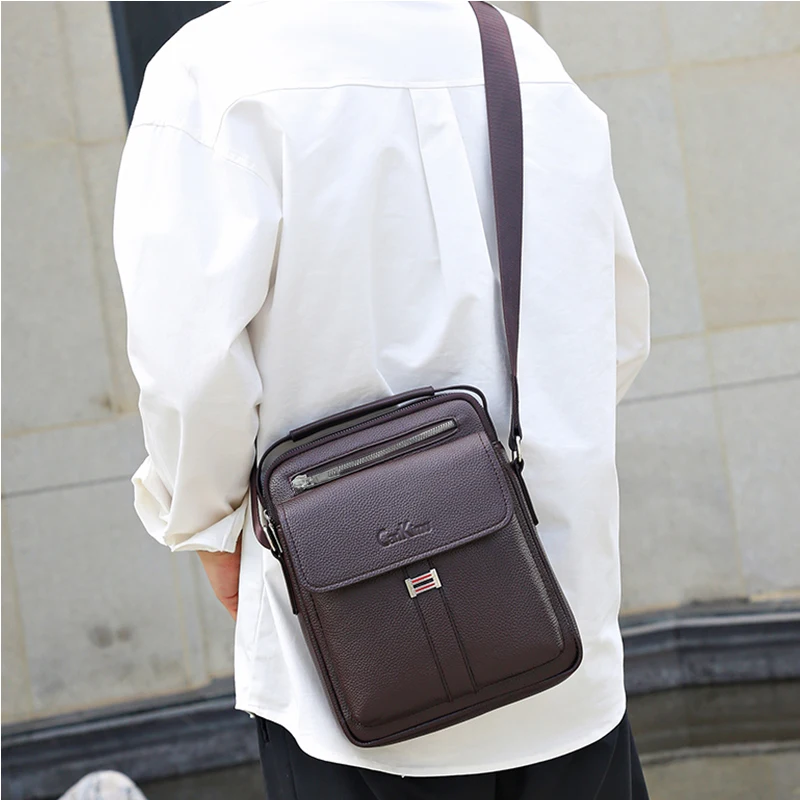 Sac à bandoulière texture cuir véritable pour hommes, sac d’affaires, sac à main d’ordinateur de grande capacité, sac de conférence