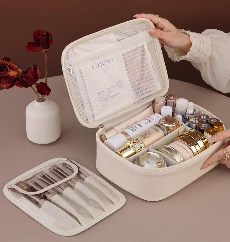 Sac à cosmétiques de grande capacité, sac de rangement séparé multifonctionnel haut de gamme pour cosmétiques, pochette pour pinceaux de maquillage, sac de lavage Portable de voyage |