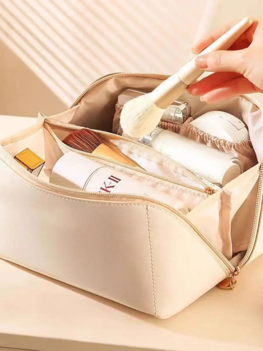 Sac à cosmétiques de voyage en cuir de grande capacité pour femme, trousse de maquillage portable, étanche, trousse de toilette multifonctionnelle, sac de rangement d’évaluation