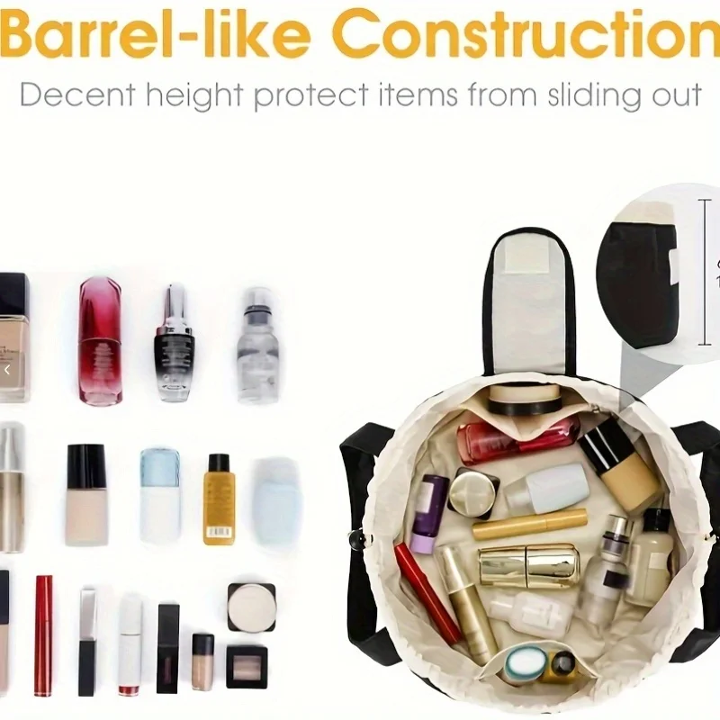 Sac à cosmétiques seau de grande capacité, organisateur de voyage de maquillage à cordon avec sangle réglable, poches supérieures rabattables, cadeau |