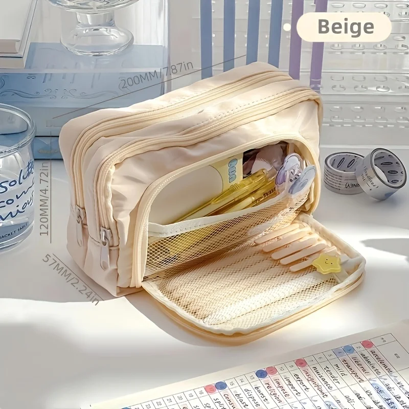 Sac à crayons esthétique de grande capacité, étui d’école porte-stylo, papeterie mignonne, pochette à crayons à fermeture éclair de Style Simple, fournitures scolaires