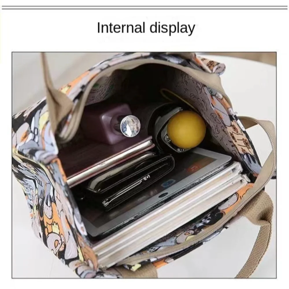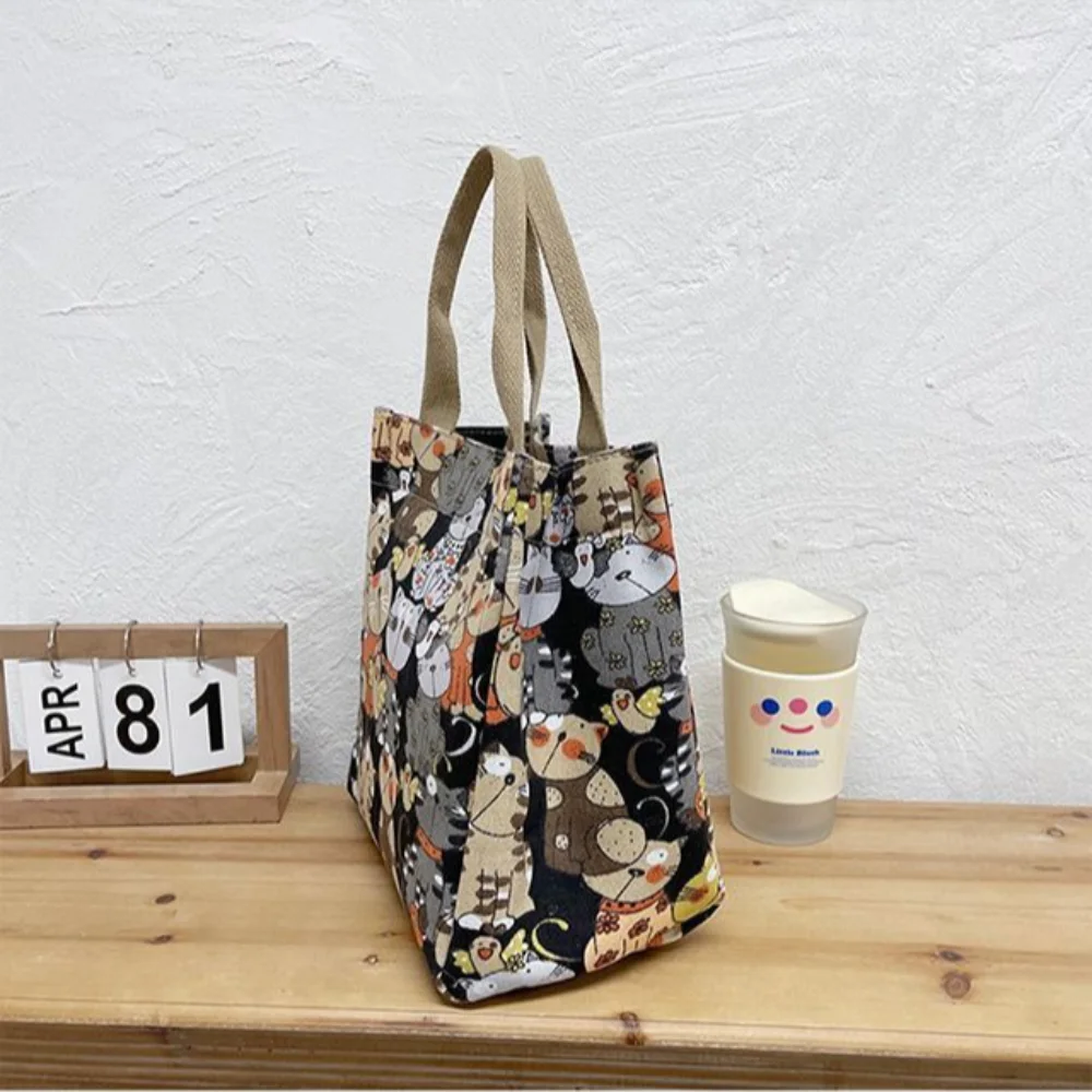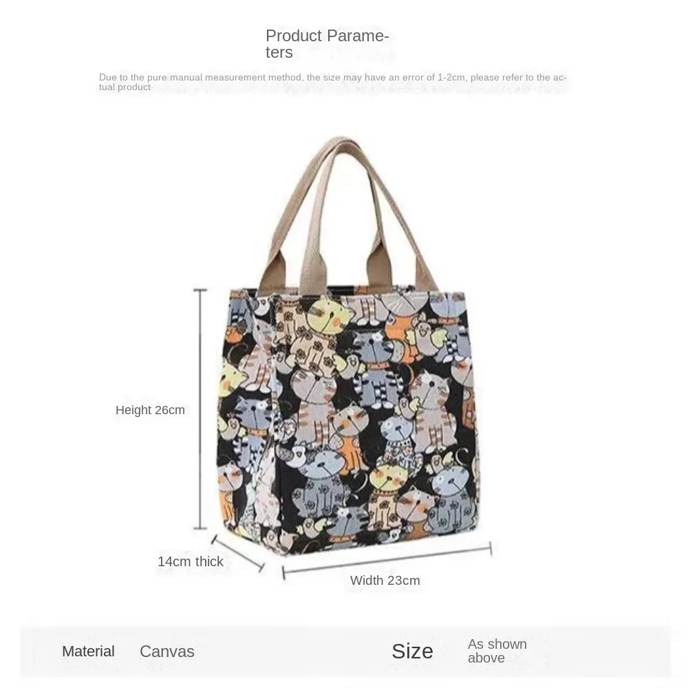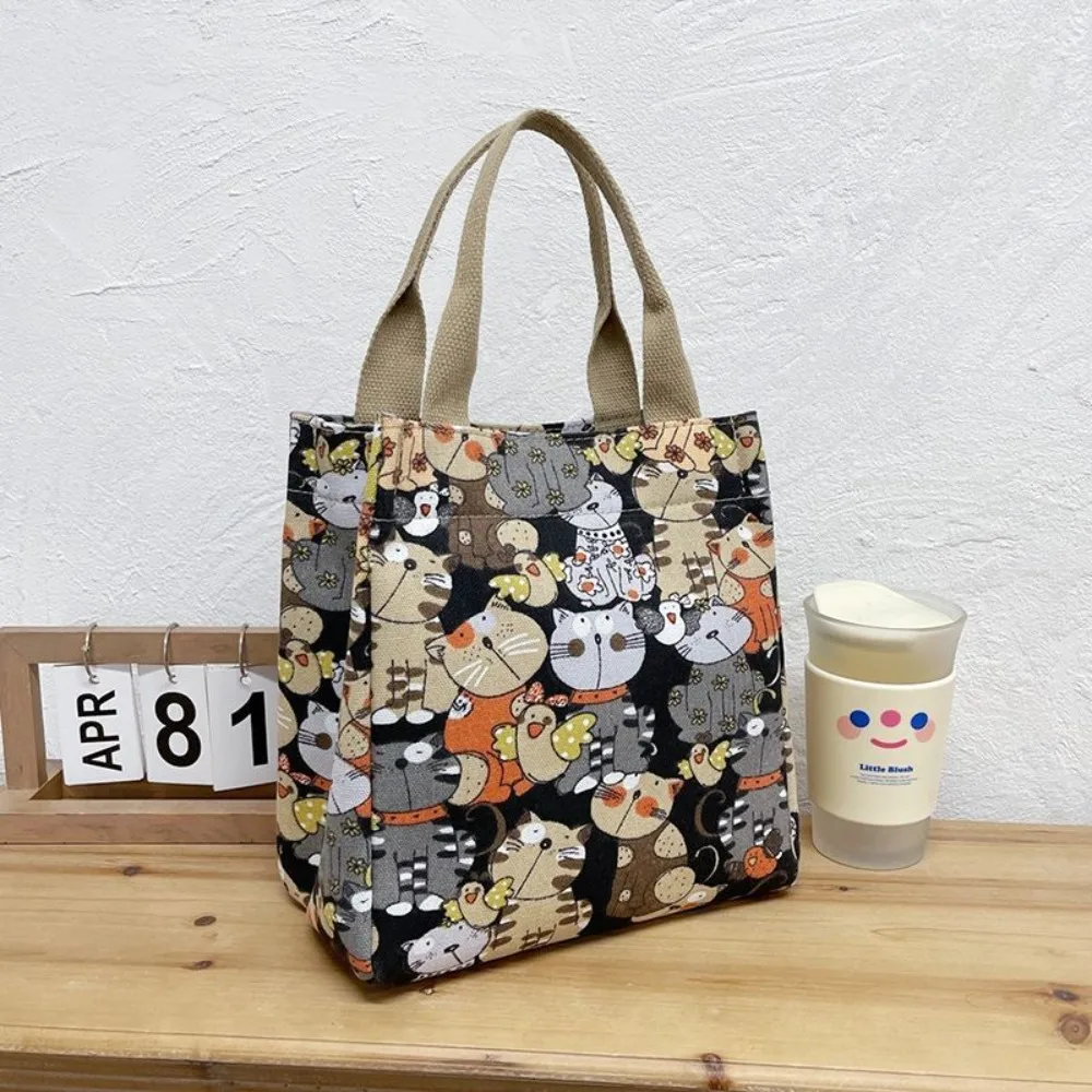 Sac à déjeuner imprimé dessin animé mignon, sac en toile Portable, sac à main et fourre-tout décontractés pour femmes pour l’école, le bureau, sac de pique-nique