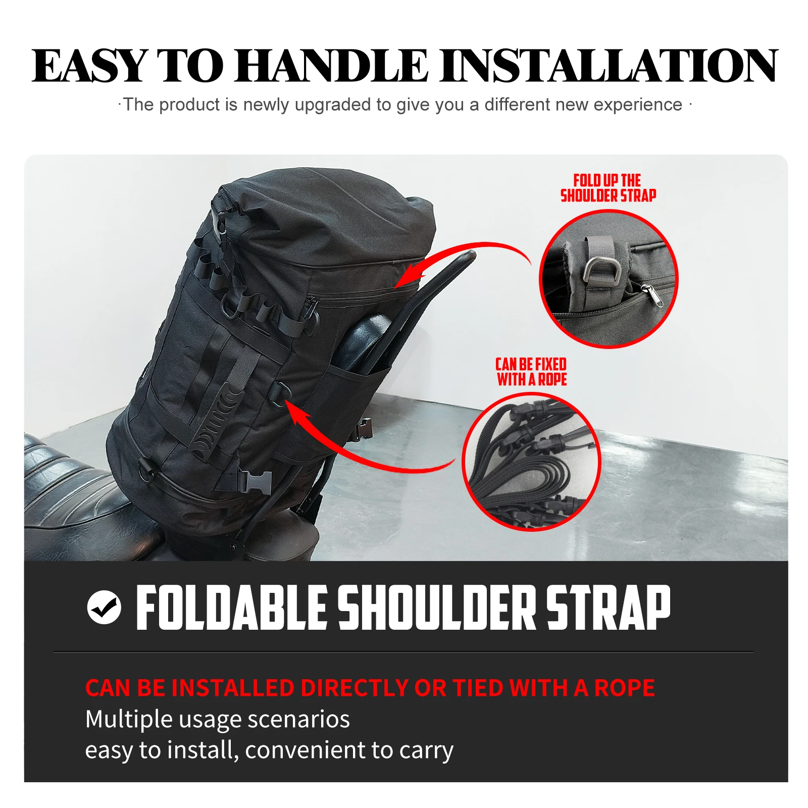 Sac à dos de bagage pour moto 50L-85L, sac de dossier Sissy Bar avec sangles universelles pour la plupart des motos, sac de support arrière extensible |