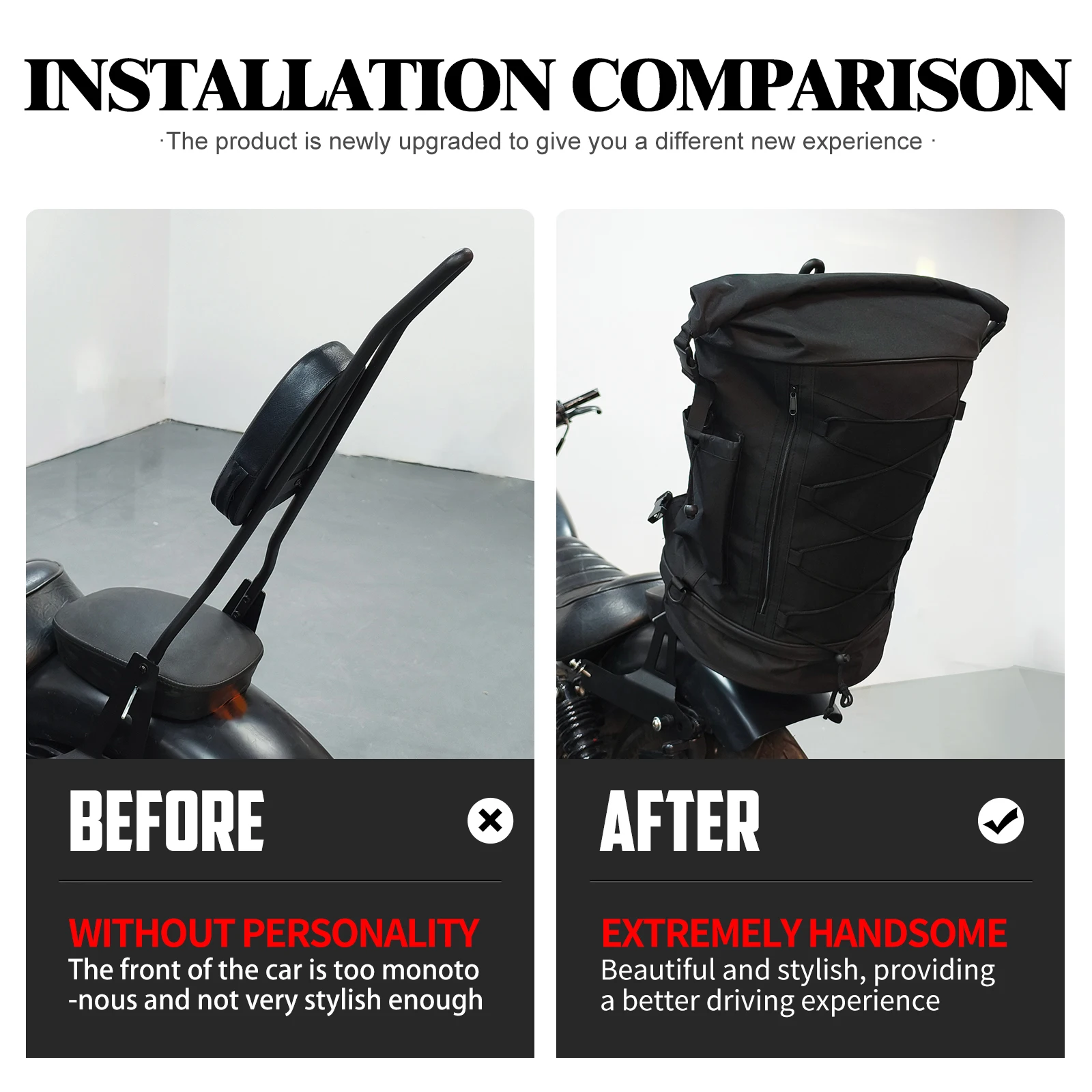 Sac à dos de bagage pour moto 50L-85L, sac de dossier Sissy Bar avec sangles universelles pour la plupart des motos, sac de support arrière extensible
