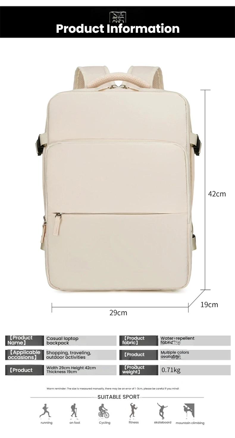 Sac à dos de voyage pour femmes et hommes, bagage à main 42x19x29 pour cabine Ryanair, sac de voyage, sac à livres étanche pour ordinateur portable pour le travail