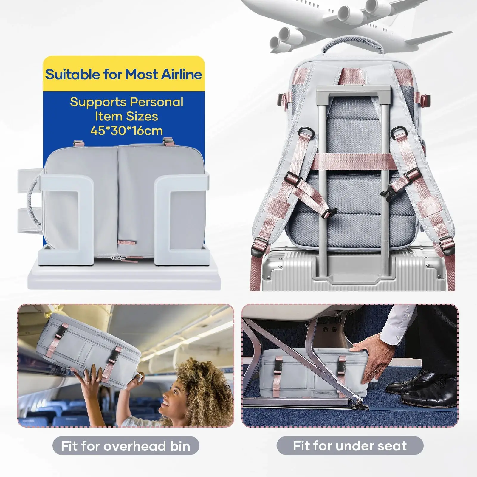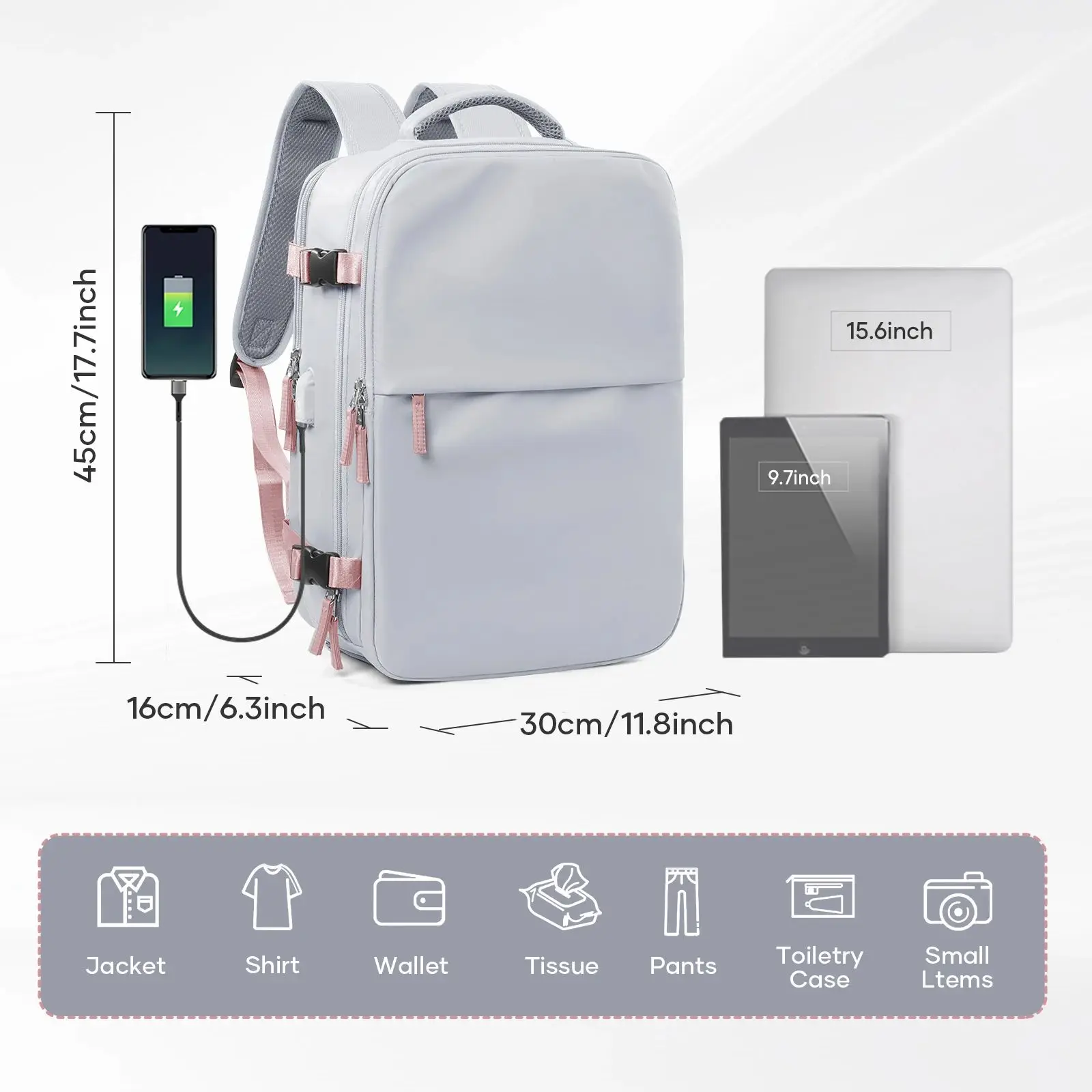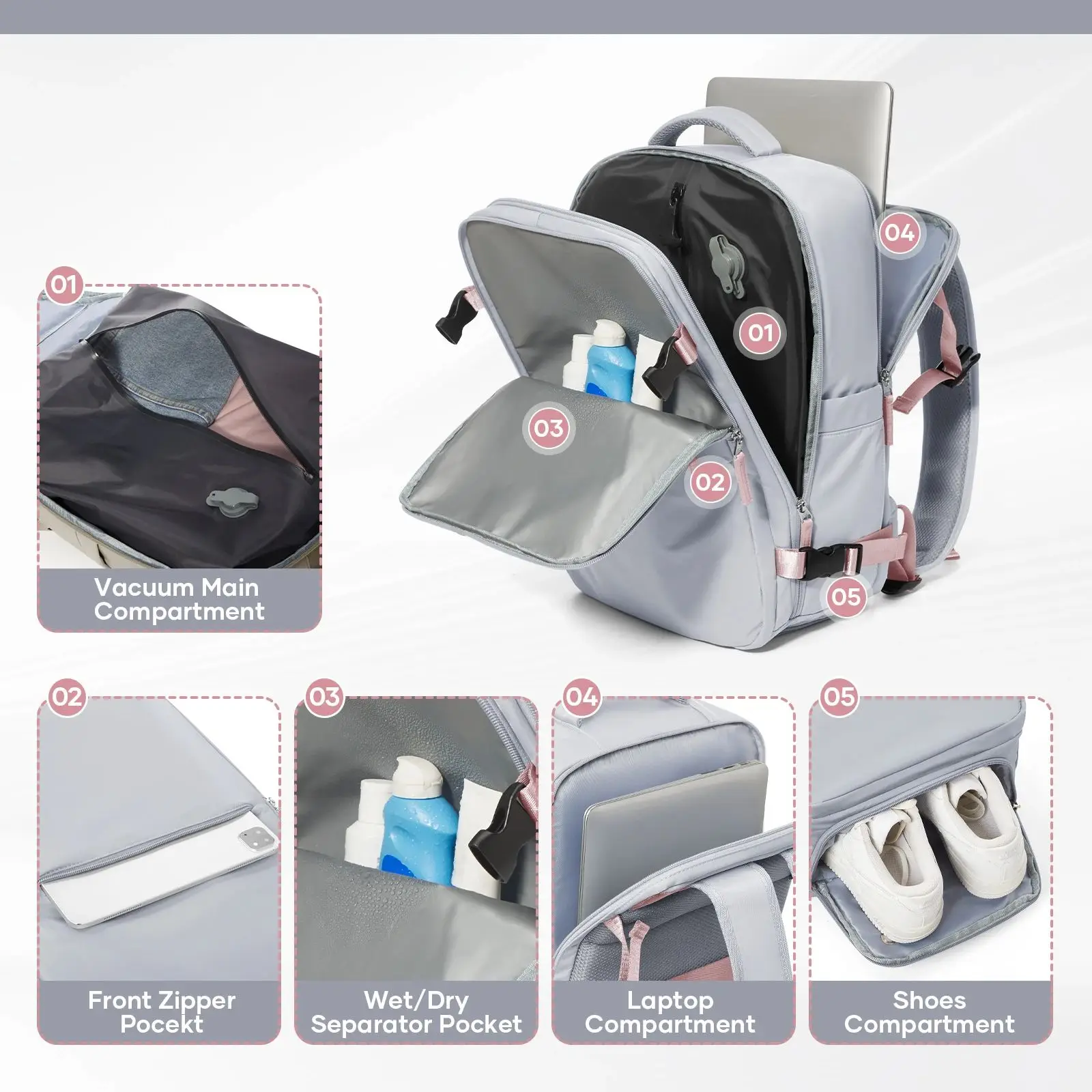 Sac à dos de voyage sous vide avec pompe (cabine Easyjet) – Sac à main d’avion pour ordinateur portable 15,6″ étanche – Unisexe – Hommes Femmes Bagage de cabine