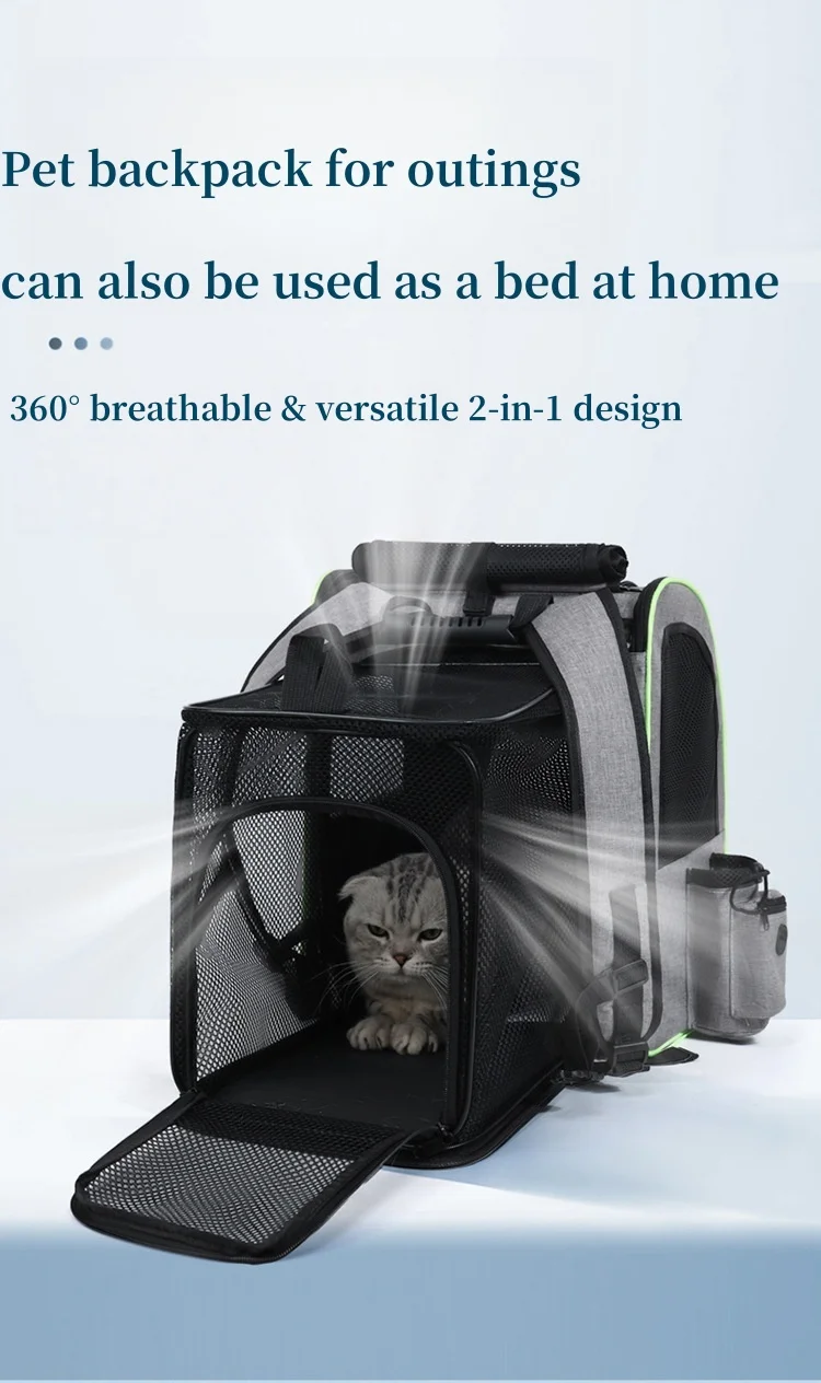 Sac à dos extensible pour chat – Grand espace, portable et pliable, respirant, sac de voyage pour animaux de compagnie pour les aventures en plein air