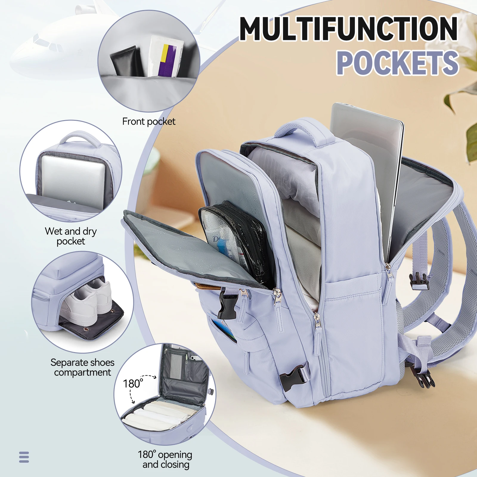 Sac à dos pour bagages à main 40x30x20, sac à dos de cabine de voyage pour dames, sac à dos étanche, sac à dos pour ordinateur portable à main pour hommes, sac